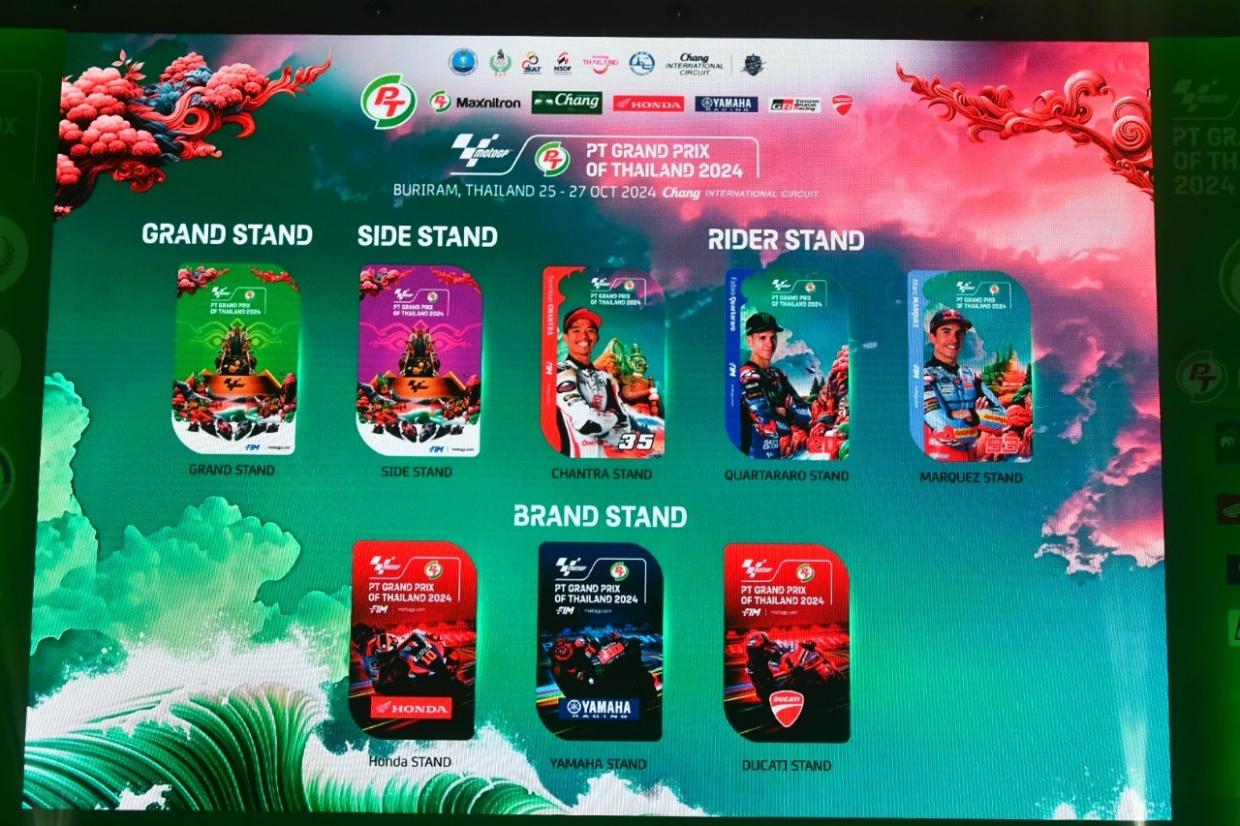 3. Rider Stand สำหรับกองเชียร์นักแข่ง 3 คน ได้แก่ มาร์เกซ สแตนด์, กวาร์ตาราโร สแตนด์, จันทรา สแตนด์ สำหรับแฟน ก้อง-สมเกียรติ จันทรา ราคา 3,000 บาท หลังหักส่วนลดสูงสุดเหลือเพียง 2,250 บาท พร้อมของที่ระลึก ลิขสิทธิ์แท้จากนักแข่งที่ชื่นชอบ และ 4. Brand Stand ในปีนี้พิเศษสุด มีการปรับผังที่นั่ง เพิ่มประเภทสแตนด์ หรืออัฒจันทร์ เพื่อดึงดูดใจให้ผู้ชมกระจายตัวสู่รอบสนาม โดยจัดให้มีสแตนด์สำหรับกองเชียร์จากค่ายรถจักรยานยนต์ชั้นนำ พร้อมรับของรางวัลจากผู้สนับสนุน และรับสิทธิ์ลุ้นรางวัลจากผู้สนับสนุนมากมายได้แก่ Honda Stand, Yamaha Stand ราคา 2,000 บาท ราคาหลังหักส่วนลดสูงสุด 25 % เหลือเพียง 1,500 บาท ส่วน "Ducati Stand" รับส่วนลดสูงสุด 20 % จากราคา 2,000 บาท เหลือเพียง 1,600 บาท