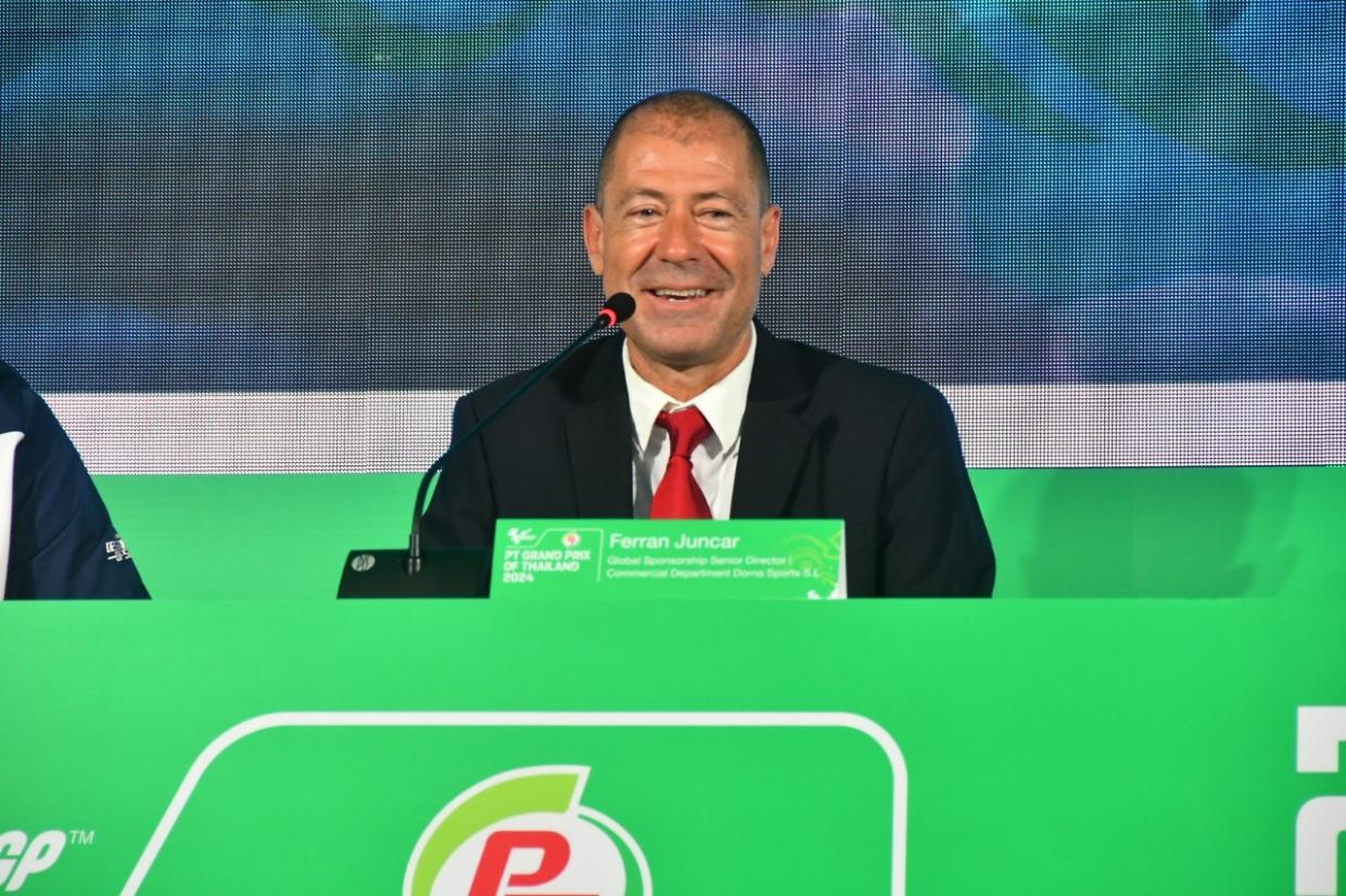 เฟร์ราน จงกา ผู้อำนวยการอาวุโสด้านผู้สนับสนุนระดับโลก Dorna Sports กล่าวว่า Dorna Sports มีความยินดีเป็นอย่างยิ่งที่ได้ต้อนรับ บริษัท พีทีจี เอ็นเนอยี จำกัด (มหาชน) เป็นผู้สนับสนุนหลักในการแข่งขัน MotoGP หวังเป็นอย่างยิ่งว่าจะได้ทำงานร่วมกัน เพื่อส่งเสริม MotoGP ประเทศไทยที่แสนพิเศษนี้ให้พิเศษขึ้นไปอีก ในปีนี้ผมมั่นใจว่าการแข่งขันสนามประเทศไทย ที่จังหวัดบุรีรัมย์ จะเป็นสุดสัปดาห์ที่ยอดเยี่ยมสนุก เข้มข้น เร้าใจ ทั้งยังมีกิจกรรมที่รอสร้างความประทับใจให้แก่แฟน MotoGP ที่เข้ามาชมในสนามมากมาย