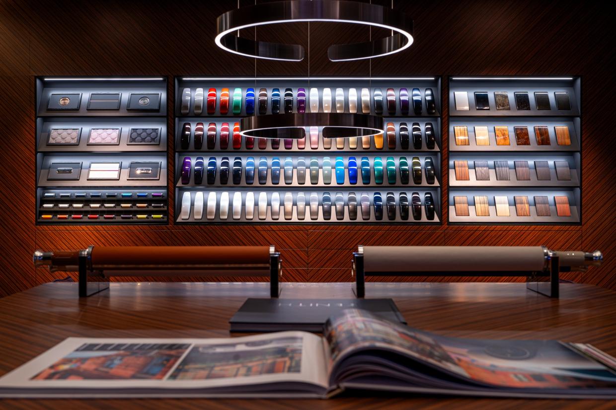 ไฮไลท์ของบูทีคแห่งนี้ คือ Atelier (อาทิลิเญ) ซึ่งเป็นห้องพิเศษส่วนตัว ให้ลูกค้าสามารถรังสรรค์ยนตรกรรมคันโปรดแบบ Bespoke กลางห้องมีโต๊ะไม้ขนาดใหญ่ ไล่ระดับความลาดเอียง เปรียบเสมือนโต๊ะทำงานของศิลปินผู้เชี่ยวชาญ โดยมีจอแอลอีดีขนาดใหญ่อยู่ด้านหน้า เพื่อใช้ประกอบการ และชมรายละเอียดต่างๆ หลังจากทำการ Bespoke ขณะที่แอลอีดีทรงกลมที่แขวนด้วยสลิงจากเพดาน สามารถปรับระดับเพื่อตรวจสอบรายละเอียดของเนื้อสี หรือวัสดุต่างๆ ได้อย่างใกล้ชิด อีกทั้งในห้องนี้ยังมีตัวอย่างหลังคาดาวตก "Starlight Headliner" ที่สามารถสัมผัสถึงความประณีต และพิถีพิถันกับผลงานระดับ craftsmanship ได้อย่างใกล้ชิด