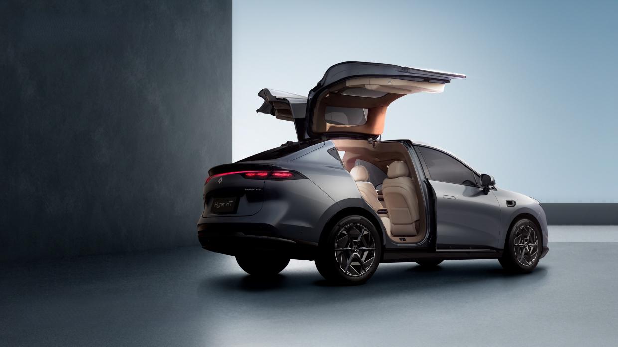 ไฮไลท์สำคัญของ Hyptec HT ที่ไม่พูดไม่ได้กับประตูคู่หลังแบบปีกนกนางนวล (Electric Gull-Wing Door) สะกดทุกสายตา ในทุกท่วงท่าการเข้า-ออกห้องโดยสาร เป็นเอกลักษณ์ของ Hyptec HT ที่มาพร้อมสไตล์การเปิดประตูแบบยกขึ้น พร้อมระบบปลดลอคประตูอัตโนมัติ และป้องกันการหนีบ
