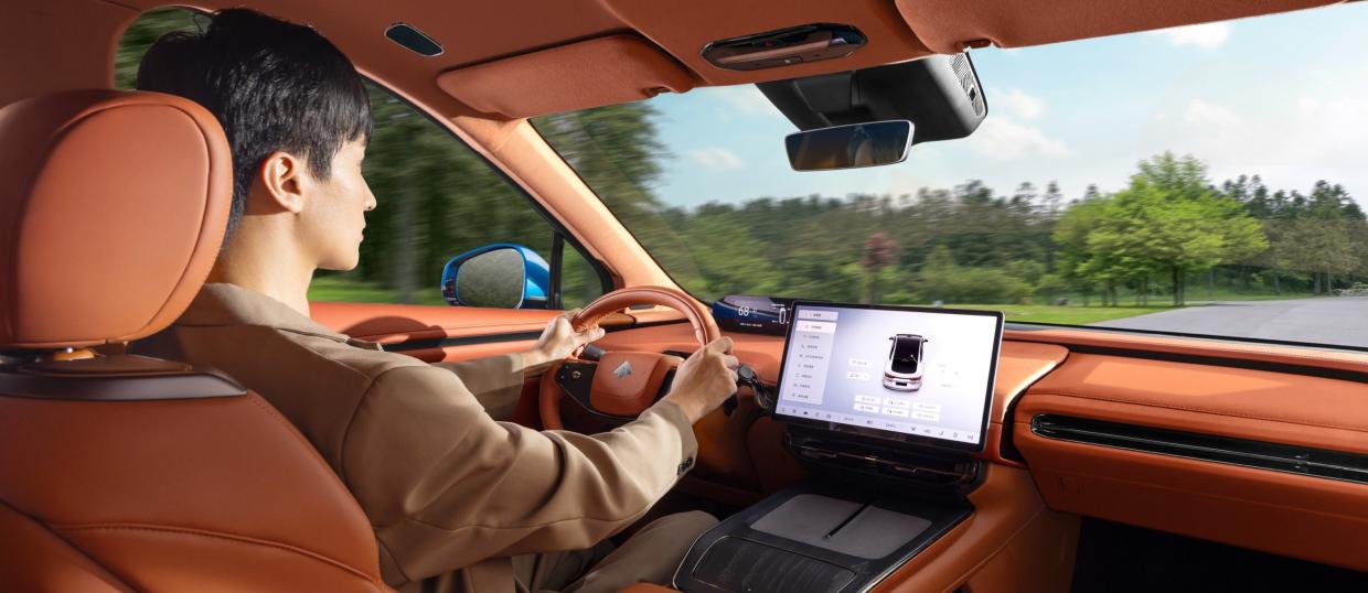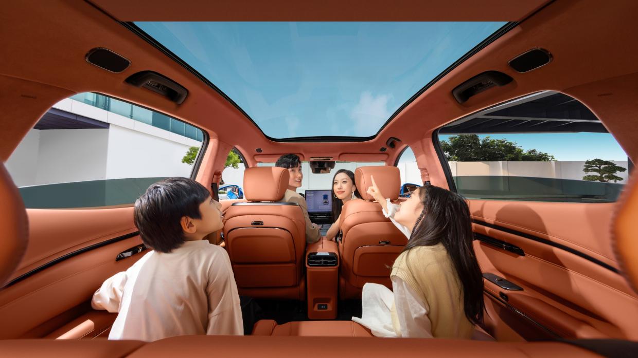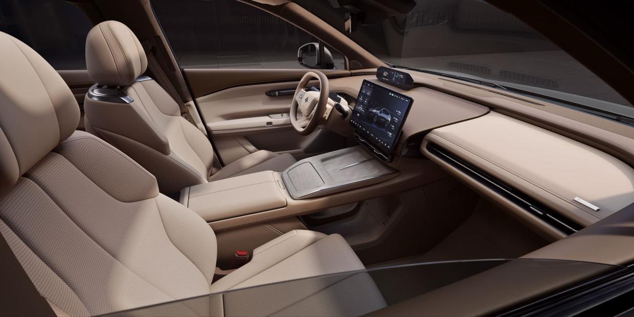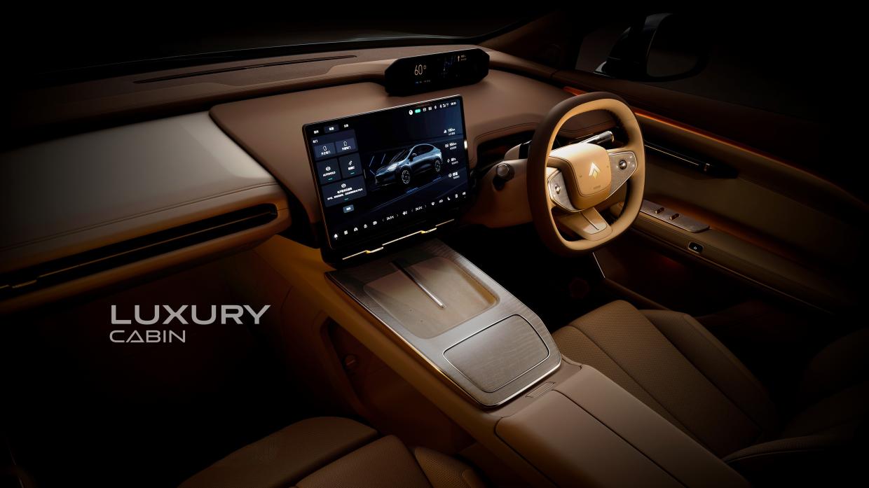 ภายในมีการตกแต่งห้องโดยสารสไตล์โมเดิร์น Modernist Cockpit สร้างขึ้นเปรียบดั่งคฤหาสน์เคลื่อนที่ตอบโจทย์การใช้ชีวิต เน้นวัสดุอย่างลายไม้ และหนังคุณภาพสูงมาใช้ รถคันนี้จึงสำหรับครอบครัวยุคใหม่ที่มองหาความเหนือระดับพร้อมความสะดวกสบายในการเดินทาง หน้าจอกลางขนาดใหญ่ 14.6 นิ้ว ความละเอียดสูง 2.5K ให้ข้อมูลรายละเอียดตัวรถ พร้อมสั่งการระบบไฟฟ้าทั้งหมดจากหน้าจอ