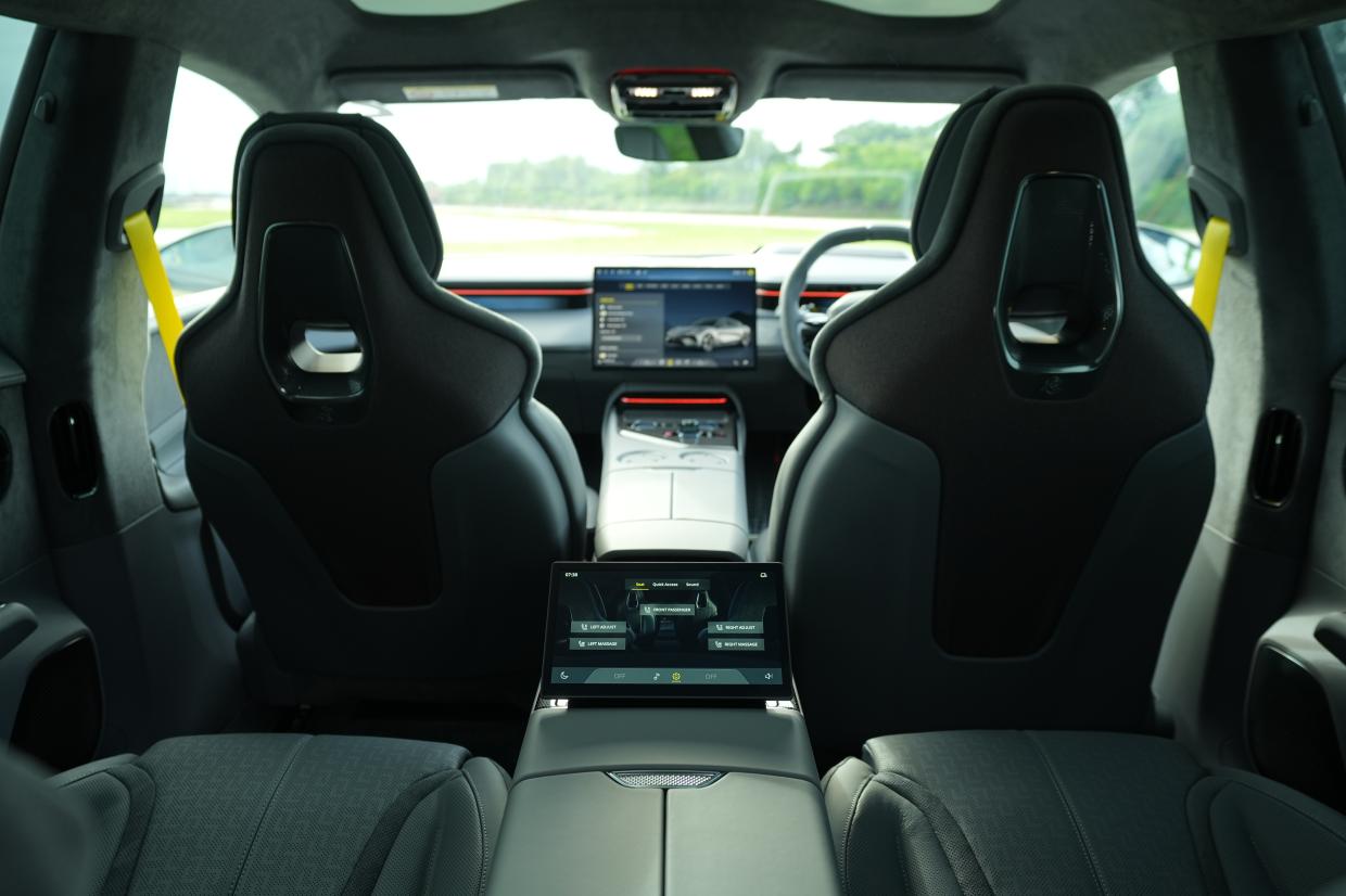 ดีไซน์ภายนอกเน้นช่องลมตามจุดต่างๆ คล้าย Evija เพื่ออากาศพลศาสตร์ และเป็นรถที่ใส่เซนเซอร์ LiDAR (Light Detection and Ranging อุปกรณ์ที่ใช้แสงเพื่อตรวจจับ และ คาดคะเนระยะทางของวัตถุ สำหรับใช้ในระบบ Autonomus Driving หรือ ระบบขับขี่แบบอัตโนมัติ ไร้คนขับ) ซ่อนเนียนแบบ Pop up ติดอยู่ 4 จุดด้วยกัน คือ เหนือซุ้มล้อหน้า 2 ฝั่ง และบนหลังคาหน้า/หลัง รองรับการขับขี่แบบอัตโนมัติ