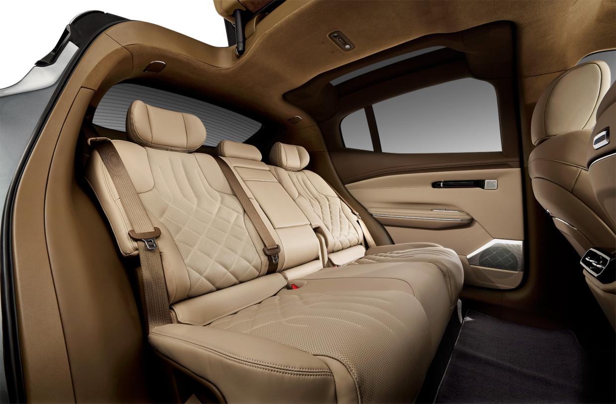 Hyptec HT นำเสนอมิติใหม่ของความสะดวกสบาย และความหรูหราเหนือระดับ ด้วยห้องโดยสารระดับเฟิร์สต์คลาสส์ขนาดใหญ่พิเศษ เพื่อการพักผ่อนที่สะดวกสบาย เบาะนั่งโดยสารหุ้มด้วยวัสดุหนัง Nappa คุณภาพสูง และที่พักแขนทำจากวัสดุไม้แท้ ให้สัมผัสที่ดีเยี่ยม พร้อมด้วยฟีเจอร์เบาะรองน่องผู้โดยสารด้านหน้าปรับด้วยระบบไฟฟ้า พนักพิงเบาะหลังปรับเอนได้มากถึง 143 องศา ทำ ให้ผู้โดยสารสามารถนอนพักผ่อนได้อย่างสะดวกสบาย เพิ่มความสบายระหว่างการเดินทางด้วยที่รองขาสำหรับผู้โดยสารตอนหลัง ทำให้ผู้โดยสารสามารถเหยียดขาได้อย่างอิสระ ลดอาการเมื่อยล้าของขา และเท้าระหว่างการเดินทางไกล นอกจากนี้ ยังมีโต๊ะอเนกประสงค์ในเบาะหลังคนขับดีไซจ์นโค้ง เพื่อลดอันตรายจากการกระแทกสำหรับเด็ก เบาะนวดไฟฟ้า 10 จุดคู่หน้า มอบความเพลิด เพลินจากการนวดระดับสปาด้วยโหมดการนวด 5 รูปแบบ