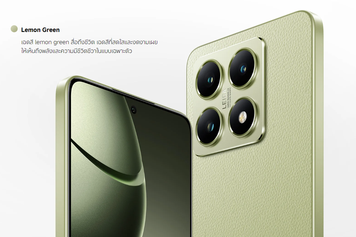 Xiaomi 14T มีให้ลง 4 สี คือ Titan Gray, Titan Blue ,Titan Black โดยเพิ่ม Lemon Green ฝาหลังลายหนัง