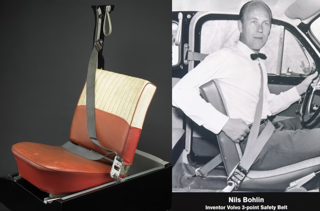 เข็มขัดนิรภัยถือเป็นอุปกรณ์ความปลอดภัยที่เป็นที่รู้จักมากที่สุดในรถยนต์ อุปกรณ์เหล่านี้ช่วยป้องกันการบาดเจ็บสาหัสโดยให้ผู้ขับขี่ และผู้โดยสารนั่งอยู่บนเบาะอย่างปลอดภัยในกรณีที่เกิดอุบัติ เหตุ Nils Bohlin วิศวกรของ Volvo (โวลโว) นำเอา Volvo PV544 (โวลโว พีวี 544) เป็นรถยนต์รุ่นแรกของโลกที่มีการติดตั้งเข็มขัดนิรภัยแบบ 3 จุดขึ้นในปี 1959 แม้ว่าการออกแบบของเขาจะได้รับการคุ้มครองโดยสิทธิบัตร แต่บริษัทได้ตัดสินใจว่าเพื่อความปลอดภัยของประชาชน ควรปล่อยให้สิ่งประดิษฐ์นี้สามารถใช้ประโยชน์ได้อยู่ เพื่อให้ผู้ผลิตรถยนต์ทุกรายสามารถใช้งานได้อย่างเสรี ออสเตรเลียเป็นผู้นำในการบังคับให้ใช้เข็มขัดนิรภัย เข็มขัดนิรภัยสำหรับเบาะหน้าได้รับการกำหนดให้ใช้ในปี 1969 และที่นั่งทุกที่นั่งจะต้องมีเข็มขัดนิรภัยภายในปี 1971 นอกจากนี้ ตั้งแต่ปี 1971 เป็นต้นมา ข้อกำหนดในหลายประเทศ กำหนดให้ใช้เข็มขัดนิรภัยเป็นอุปกรณ์มาตรฐานในรถยนต์จวบจนถึงปัจจุบัน