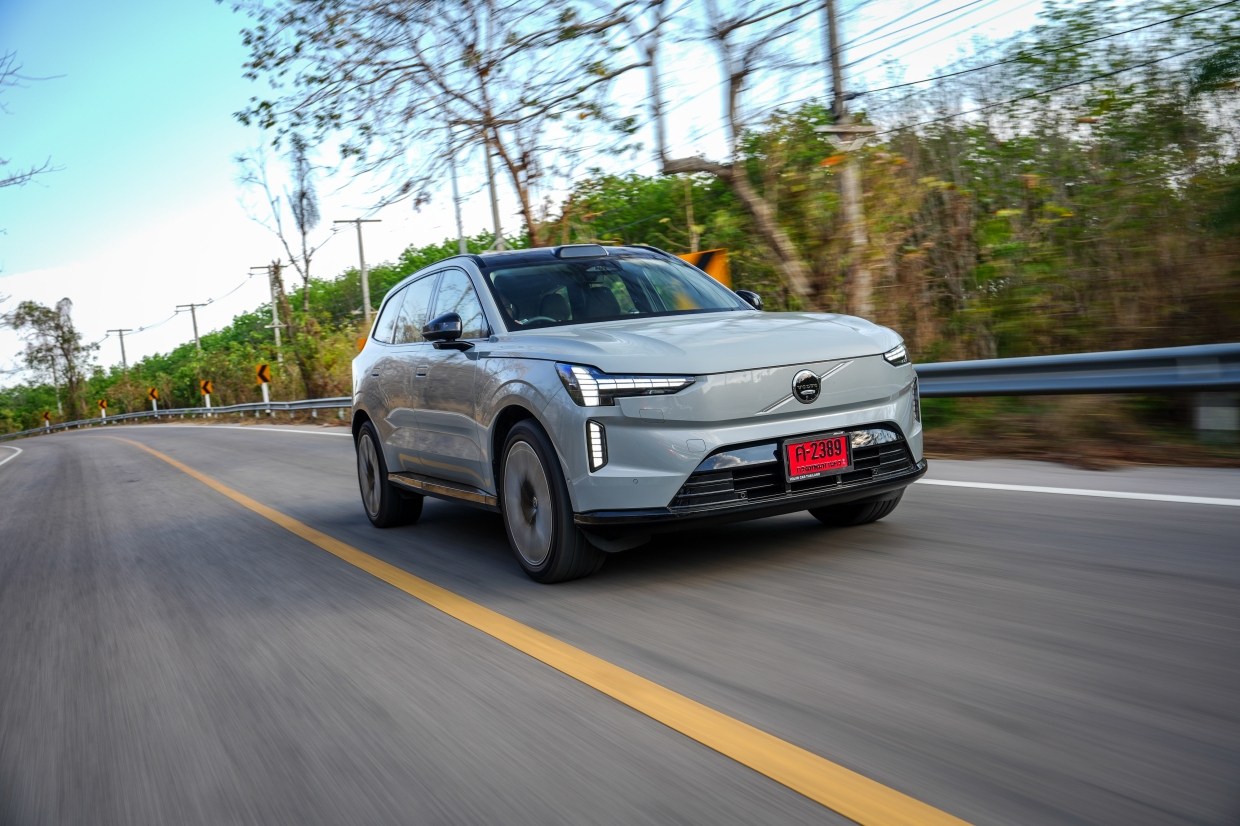 ในการลองขับครั้งนี้ Volvo เน้นไปที่รุ่น EX90 Ultra Twin Performance 7 seats มอเตอร์คู่ตัวแรง 7 ที่นั่ง และมี Twin Performance 6 seats มอเตอร์คู่ตัวแรง 6 ที่นั่ง มาให้ดูความแตกต่าง ซึ่งทั้งคู่ใช้หลังคาพาโนรามิก