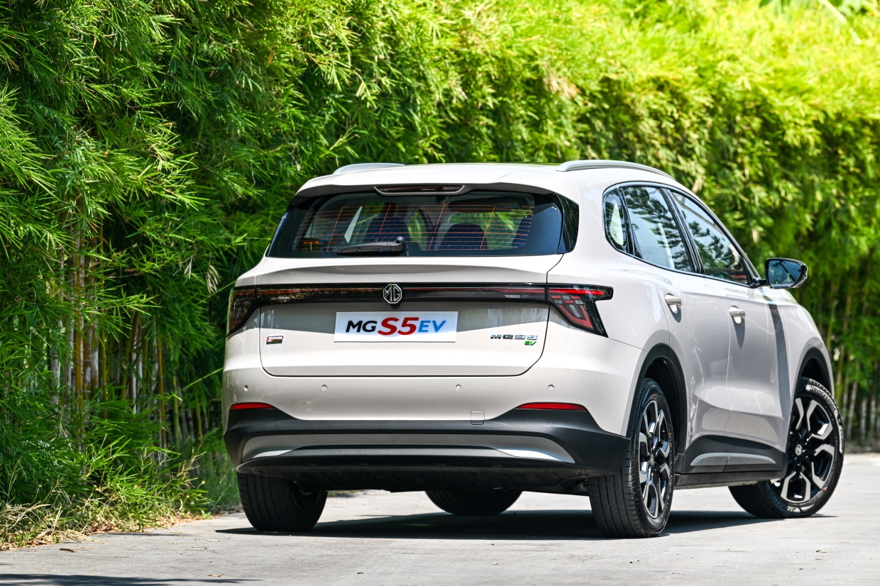 MG ออกแบบ MG S5 EV ตามหลักอากาศพลศาสตร์ ค่าสัมประสิทธิ์แรงเสียดทานต่ำที่ 0.28cd กระจังหน้าเปิด-ปิดอัตโนมัติ (Active grille) เส้นสายบนตัวรถเป็นการผสมผสานระหว่าง MG5, MG ZS (เซดเอส) และ MG HS (เอชเอส) รวมทั้งจุดเด่นของรถไฟฟ้า MG4 เข้าไว้ด้วยกัน