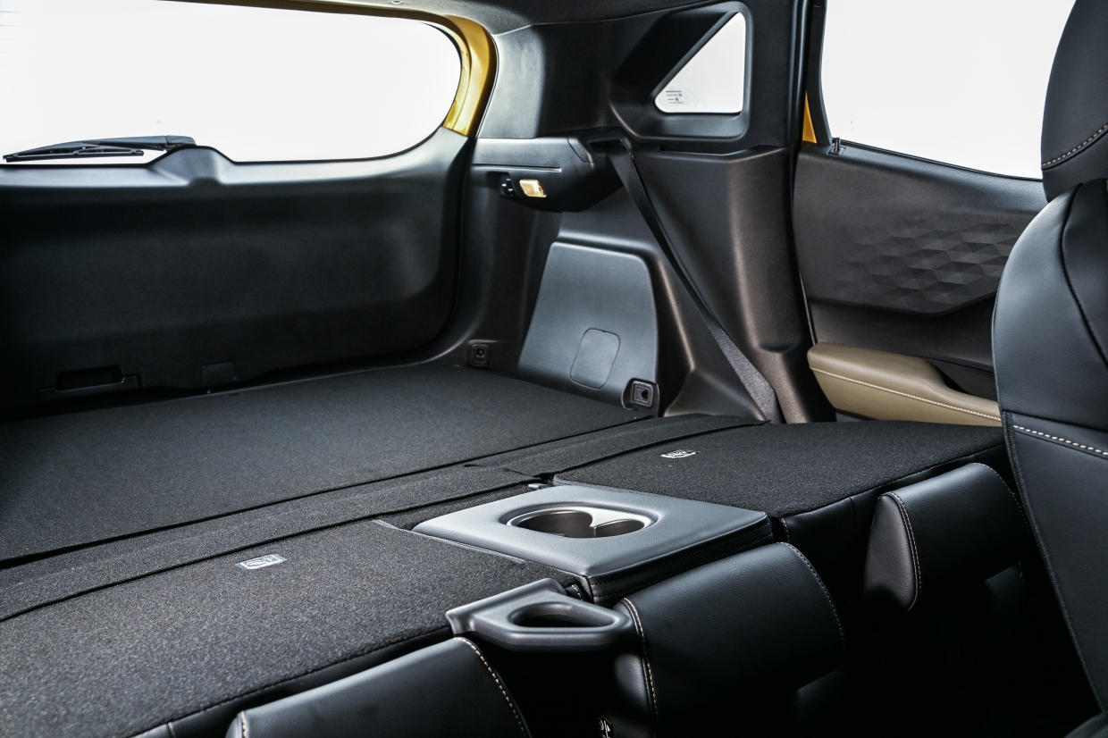 • ห้องโดยสารขนาดใหญ่ที่สุดในรถระดับเดียวกัน พื้นที่เหนือศีรษะ พื้นที่หัวไหล่ และพื้นที่วางขาที่กว้าง ทำให้สามารถเดินทางได้พร้อมกันถึง 5 คน โดยไม่รู้สึกอึดอัด เบาะนั่งตอนหลังสามารถพับปรับแบบ 40:20:40 และปรับเอนได้ถึง 8 ระดับ พร้อมด้วยวัสดุหุ้มเบาะ “Heat Guard” ที่ช่วยสะท้อนความร้อนจากแสงแดด