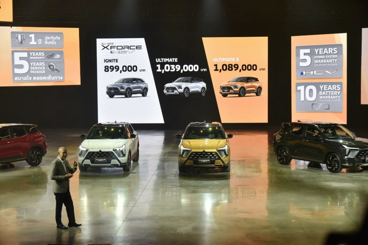 All-New Mitsubishi XFORCE HEV ได้รับการพัฒนาร่วมกับทีมพัฒนาผลิตภัณฑ์ชาวไทย และมีฐานการผลิตที่โรงงานมิตซูบิชิ มอเตอร์ส แหลมฉบัง จ. ชลบุรี มั่นใจได้ในคุณภาพรถยนต์ และบริการหลังการขายที่ครบครัน แบ่งออกเป็น 3 รุ่นย่อย ได้แก่ Ignite Ultimate และรุ่นทอพ Ultimate X
