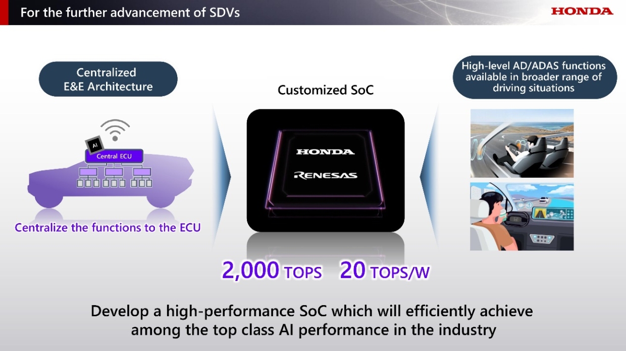 นอกจากนี้ Honda 0 Series เจเนอเรชันถัดไป จะมาพร้อมสถาปัตยกรรมยานยนต์แบบ Centralized E&E Architecture เพื่อมอบระบบ AD/ADAS ที่ล้ำสมัยยิ่งขึ้น