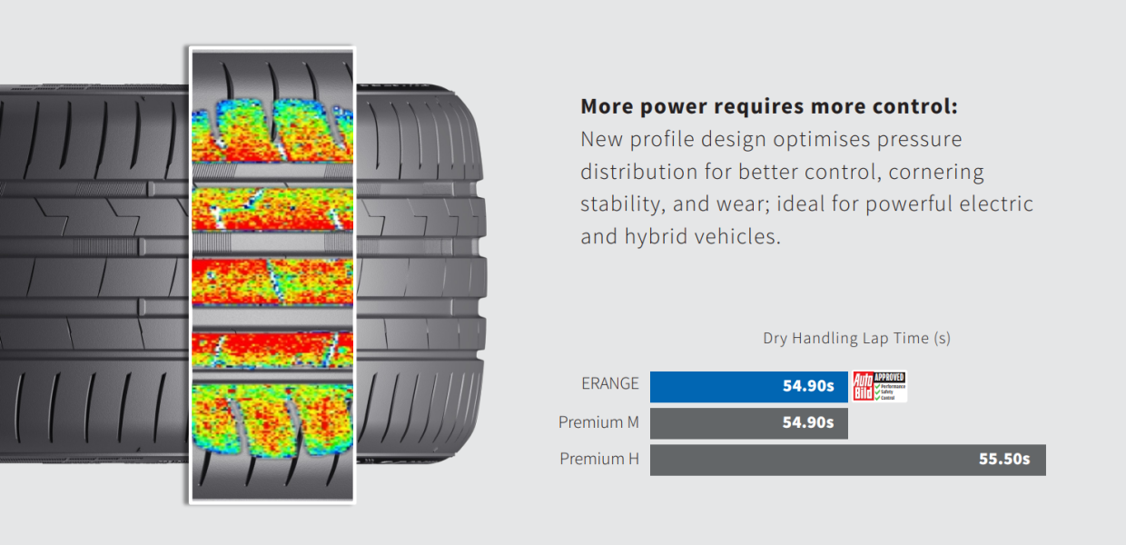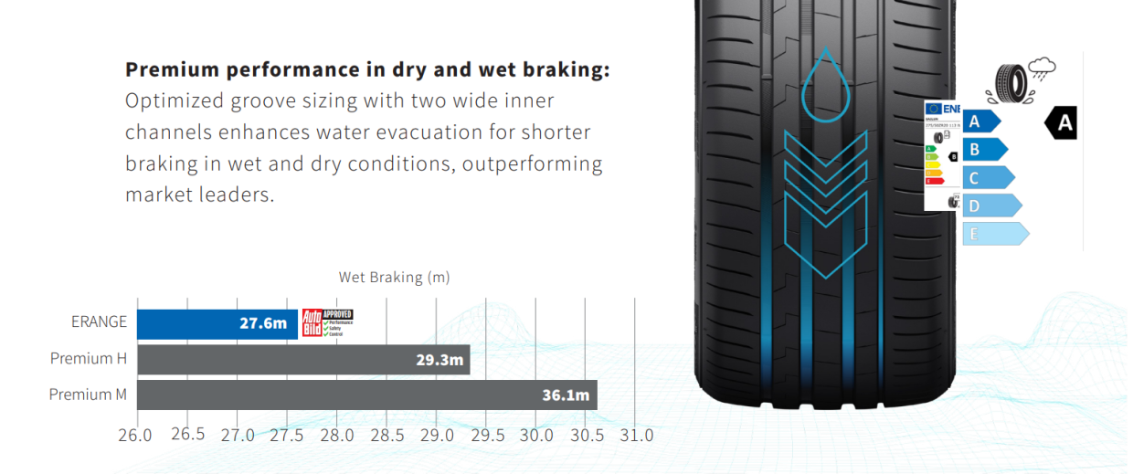 ATREZZO ERANGE คือยางสมรรถนะสูงระดับ Ultra High Performance (UHP) ที่พัฒนาขึ้นโดยเฉพาะสำหรับรถยนต์พลังงานไฟฟ้า ด้วยสูตรยาง EcoPoint 3 ซึ่งผสานเทคโนโลยี Silent Tread ให้ความเงียบ และความมั่นใจในการควบคุม พร้อมประสิทธิภาพการเบรกที่ยอดเยี่ยมบนทั้งถนนแห้งและเปียก ผ่านการรับรองมาตรฐานความปลอดภัยจาก AutoBild และทดสอบโดยศูนย์ IDIADA ประเทศสเปน