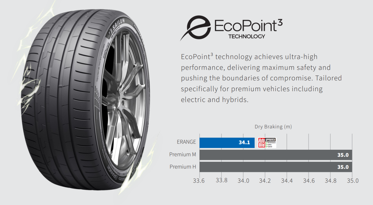 โดยผลิตภัณฑ์ใหม่และผลิตภัณฑ์เด่นของยาง EcoPoint 3 และ ยาง SAILUN คือกลุ่มยางสำหรับ รถยนต์นั่งส่วนบุคคลที่ครอบคลุมถึงรถยนต์ไฟฟ้า ได้แก่ ERANGE PERFORMANCE, ATREZZO ERANGE, ERANGE PREMIUM และ ATREZZO ZSR2