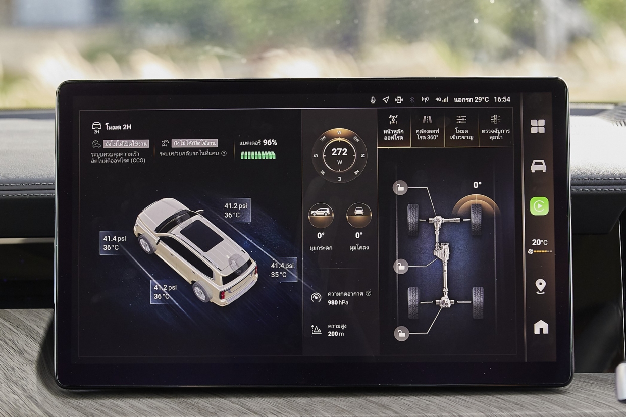 o TPMS (Tire Pressure Monitoring System) : ระบบตรวจสอบแรงดันลมยางแบบเรียลไทม์ แสดงข้อมูลแรงดัน และอุณหภูมิของยางแต่ละเส้น พร้อมแจ้งเตือนเมื่อเกิดความผิดปกติ
