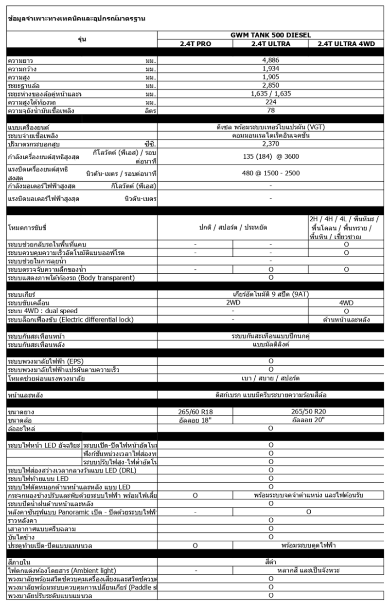 o รุ่น GWM Tank 500 Diesel 2.4T Pro