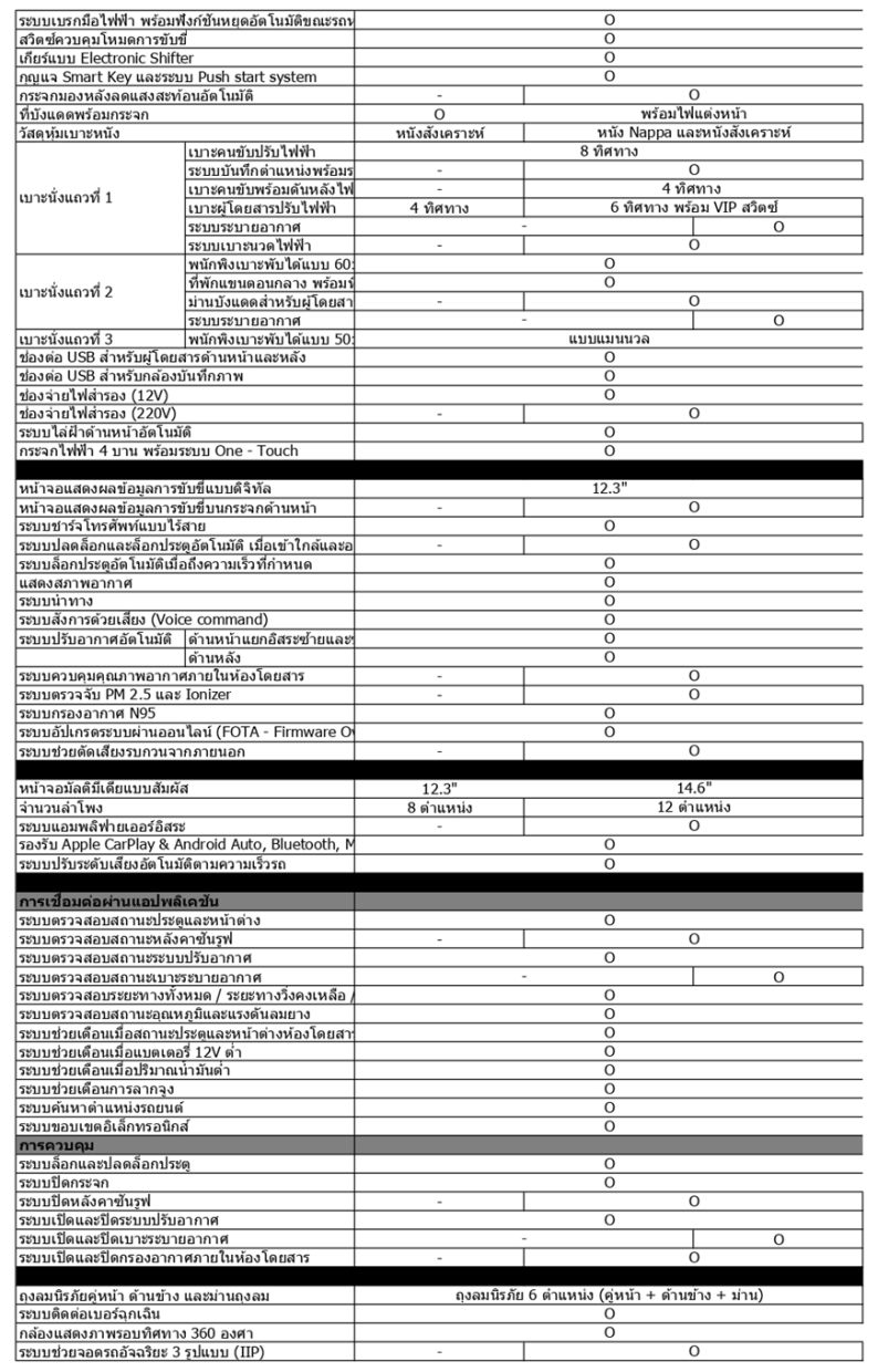 o ระบบเบาะระบายอากาศสำหรับผู้โดยสารด้านหน้า และแถว 2 เพื่อยกระดับความสบายของผู้โดยสารด้านหลังมากยิ่งขึ้น