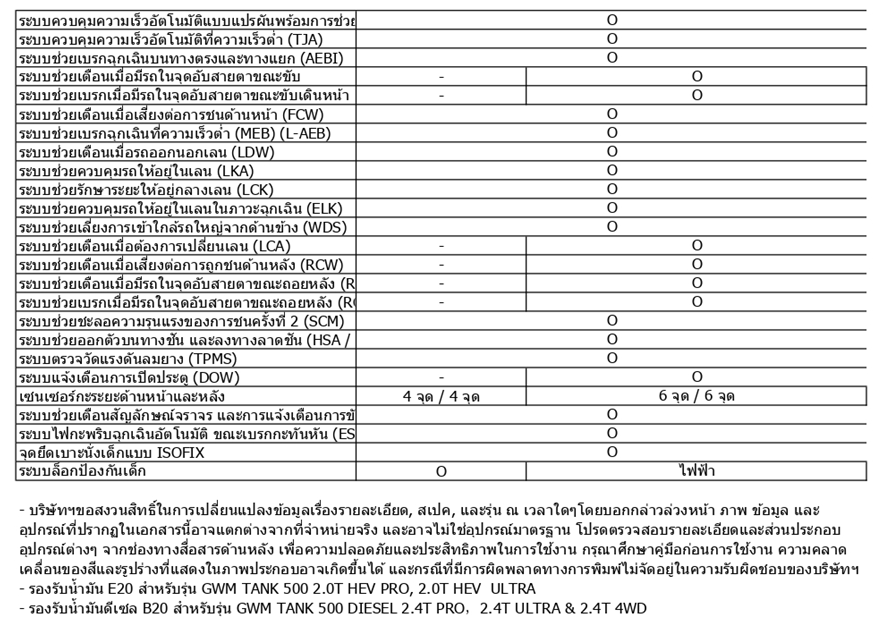 ทุกรุ่นย่อยของ GWM Tank 500 Diesel มาพร้อมอุปกรณ์มาตรฐาน ดังนี้
