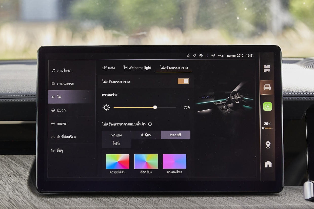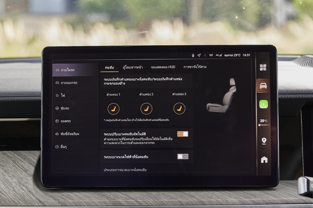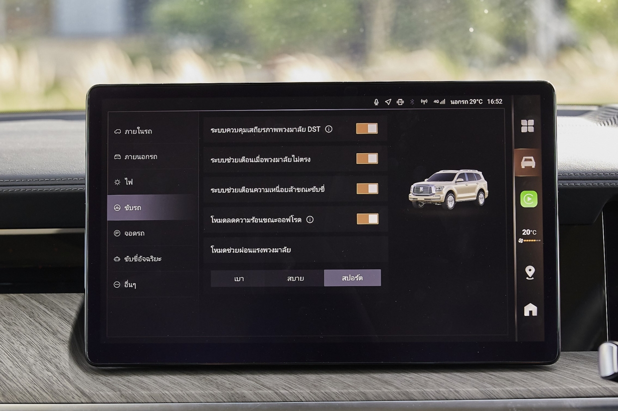 นอกจากนี้ เทคโนโลยีความบันเทิงภายในรถได้รับการออกแบบให้ทันสมัยด้วยหน้าจอสัมผัสที่รองรับมัลติมีเดียได้อย่างครบครัน พร้อมระบบเสียงรอบทิศทางที่มีลำโพงถึง 12 ตำแหน่ง (รุ่น PRO 8 ตำแหน่ง) เพื่อมอบประสบการณ์การฟังที่สมจริงและเต็มอิ่ม ห้องโดยสารยังมีระบบปรับอากาศด้านหน้าแบบแยกอิสระซ้าย-ขวา และระบบปรับอากาศด้านหลัง พร้อมด้วยระบบกรองอากาศ N95 และ ระบบ ionizer ที่ช่วยฟอกอากาศและสร้างบรรยากาศที่สดชื่นภายในรถ เพิ่มความสะดวกสบายอีกระดับด้วยม่านบังแดดสำหรับผู้โดยสารด้านหลัง เพื่อเพิ่มความเป็นส่วนตัวให้กับผู้โดยสาร