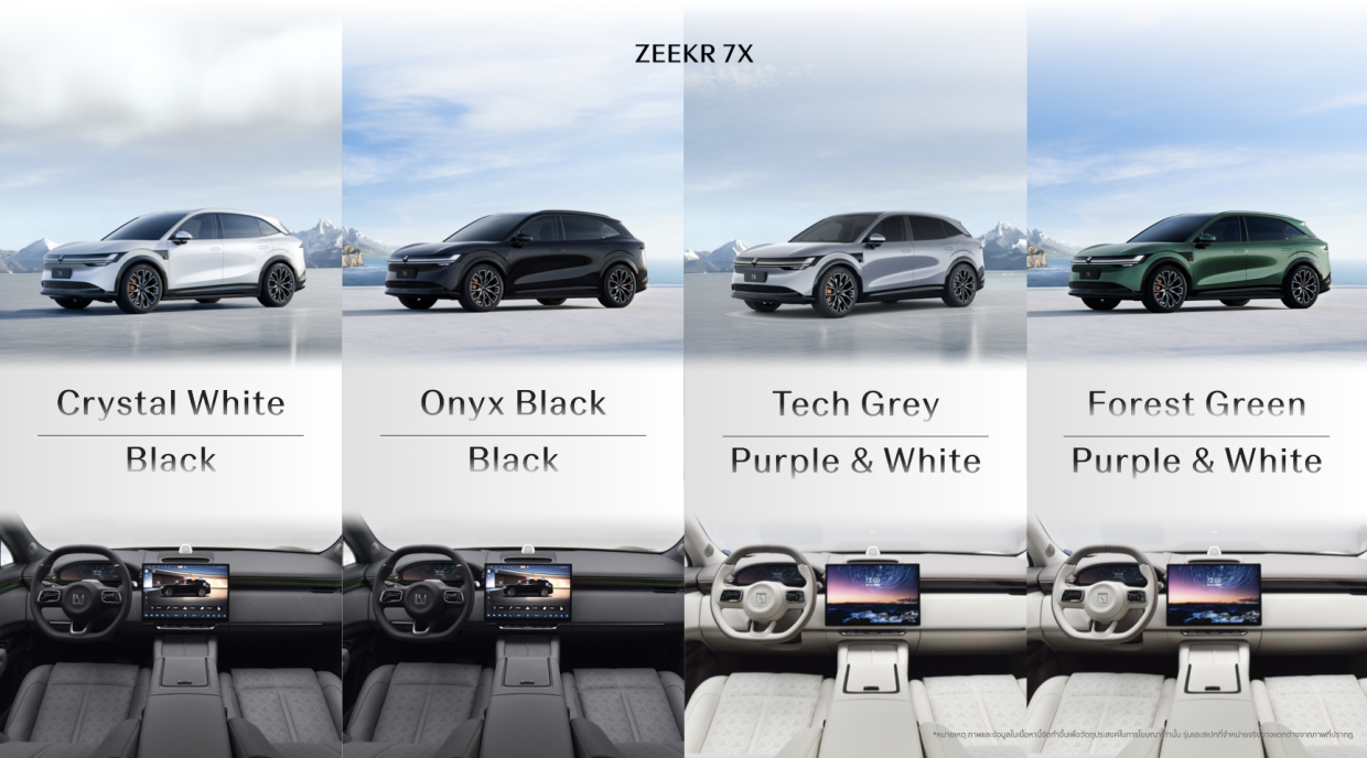 ZEEKR 7X มีรุ่นย่อยทั้งหมด 2 รุ่น ดังนี้ ZEEKR 7X Long Range RWD ราคาเบื้องต้นที่ไม่เกินระดับ 1,7xx,xxx บาท และรุ่นทอพ ZEEKR 7X Performance AWD กับราคาเบื้องต้นที่ไม่เกินระดับ 1,9xx,xxx บาท วันนี้ ZEEKR พร้อมเปิดประตูสู่อนาคตด้วย ZEEKR 7X ยนตรกรรม SUV ไฟฟ้าระดับพรีเมียมจะมาสร้างปรากฏการณ์ยานยนต์ไฟฟ้าเมืองไทยภายใต้คอนเซ็ปต์ “Indulge Every Journey” ที่ไม่เพียงแค่มุ่งเน้นจุดหมายปลายทาง แต่ยังยกระดับทุกวินาทีของการเดินทางให้กลายเป็นประสบการณ์ที่น่าประทับใจ
