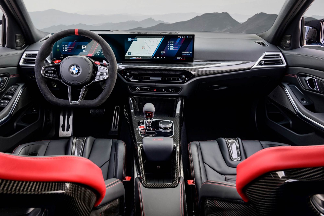 ภายในห้องโดยสารสะท้อนถึงดีเอนเอของมอเตอร์สปอร์ท ด้วยคอนโซลกลางคาร์บอนไฟเบอร์พร้อมตราสัญลักษณ์ CS ที่โดดเด่น เบาะนั่งแบบ Bucket Seat คาร์บอนไฟเบอร์พร้อมตราสัญลักษณ์ CS เรืองแสง และพวงมาลัย Alcantara พร้อมแป้นเปลี่ยนเกียร์คาร์บอนไฟเบอร์ และเครื่องหมาย 12 นาฬิกาสีแดงอันเป็นเอกลักษณ์ ตราสัญลักษณ์ CS เฉพาะรุ่น ตอกย้ำสถานะพิเศษของรถยนต์คันนี้ ระบบ Active Sound Design Next พร้อมการปรับแต่งเฉพาะรุ่น CS ช่วยเพิ่มความเร้าใจในการขับขี่