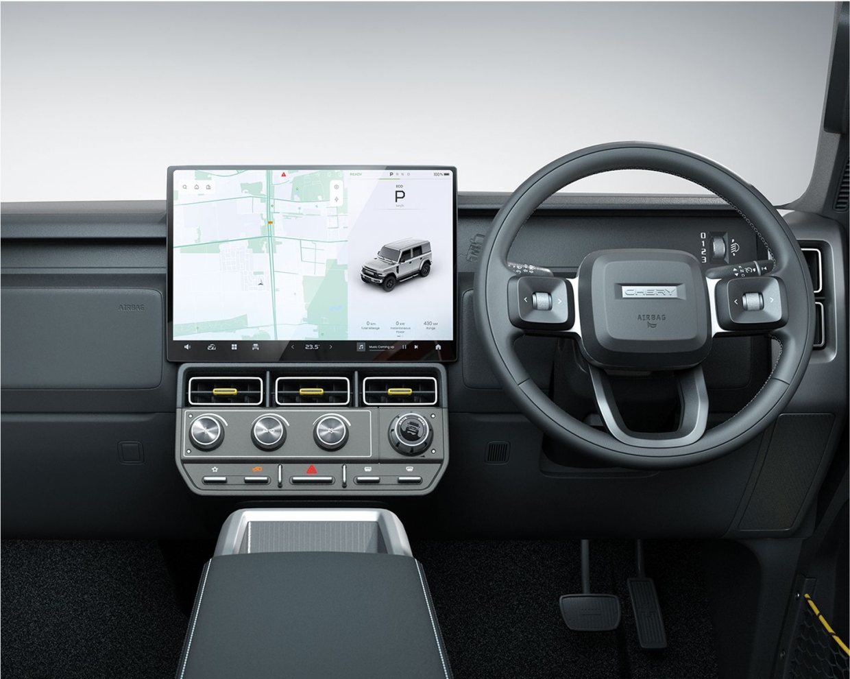 ภายในห้องโดยสารสีดำ และปุ่มควบคุมแบบวงกลม หน้าจอสัมผัสขนาด 15.4 นิ้ว 2.5K ขับเคลื่อนด้วยชิพ Qualcomm Snapdragon 8155 รองรับ Apple CarPlay และ Android Auto รองรับการเชื่อมต่อบลูทูธ เครื่องเสียงพร้อมลำโพง 7 ตำแหน่ง พร้อมระบบปรับเสียงอัตโนมัติตามความเร็ว