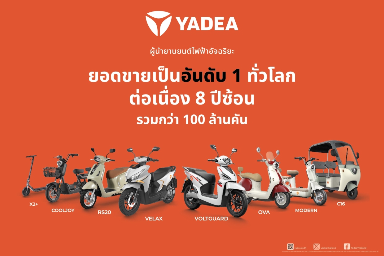 Yadea (ออกเสียงว่า ยา-เดีย) เป็นแบรนด์มอเตอร์ไซค์ไฟฟ้าที่มียอดขายสูงสุดในโลกติดต่อกัน 8 ปีซ้อน (ตั้งแต่ปี 2017-2024) มียอดขายสะสมกว่า 120 ล้านคัน และมีโรงงานกว่า 10 แห่งทั่วโลก ทั้งในประเทศจีน ไทย อินโดนีเซีย เวียดนาม เมกซิโก และบราซิล โดยมีสายการผลิตอัจฉริยะรวมกว่า 100 สาย ผลิตได้สูงสุด 30 ล้านคัน/ปี ด้วยระบบอัตโนมัติประสิทธิภาพสูง และความเร็วในการผลิตที่เหนือชั้น จึงสามารถผลิตรถได้ 1 คัน ในทุกๆ 25 วินาที และคุณภาพผ่านเกณฑ์การผลิตกว่า 99.9 % สะท้อนมาตรฐานการผลิตระดับโลก