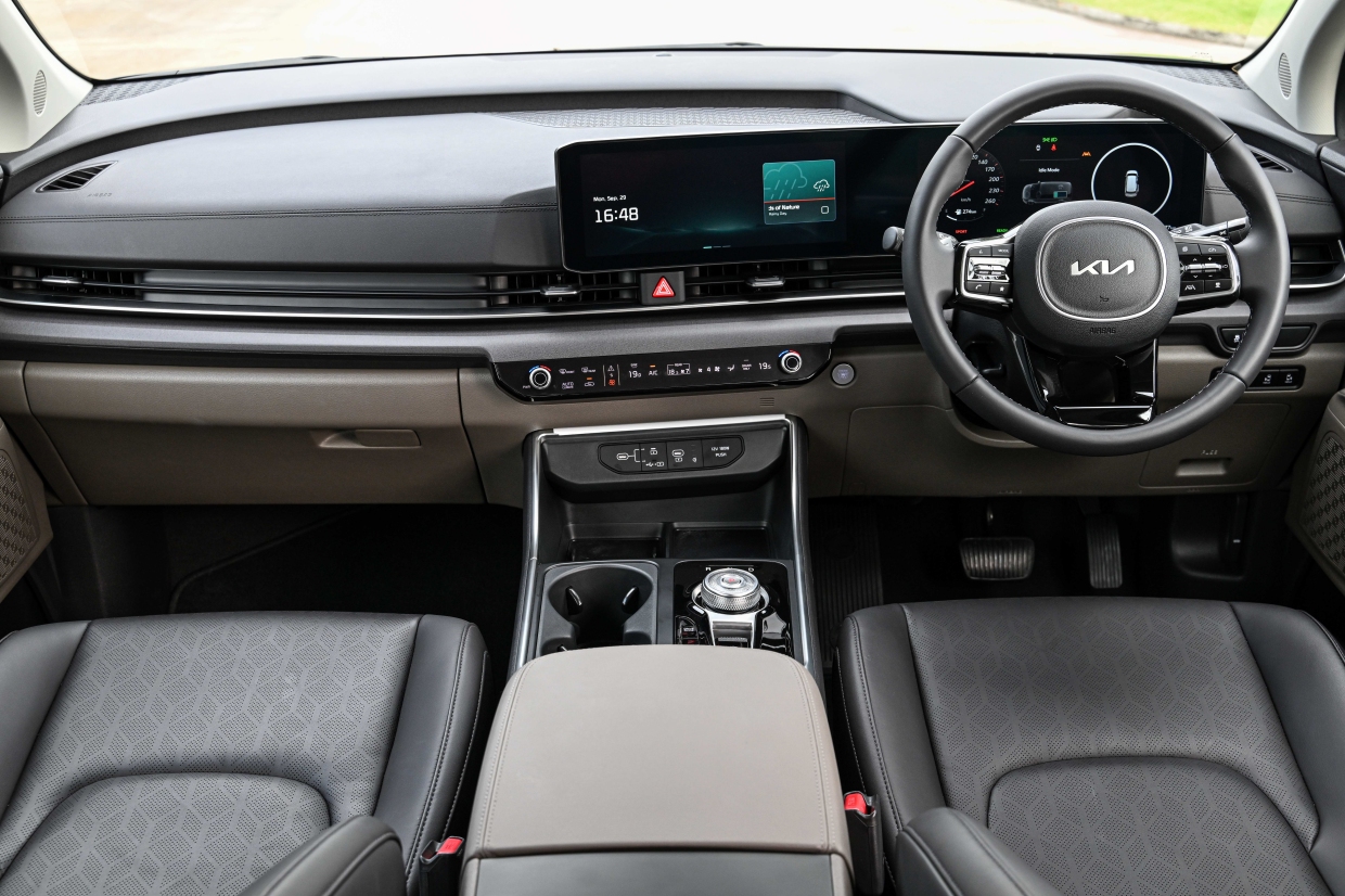 Kia Carnival HEV 7-seater ขับเคลื่อนด้วยระบบไฮบริดที่ผสานการทำงานของเครื่องยนต์เทอร์โบ 1.6 ลิตร เข้ากับมอเตอร์ไฟฟ้าขนาด 54 กิโลวัตต์ และเกียร์อัตโนมัติ 6 จังหวะ ให้กำลังสูงสุด 245 แรงม้า แรงบิดสูงสุด 367 นิวทันเมตร