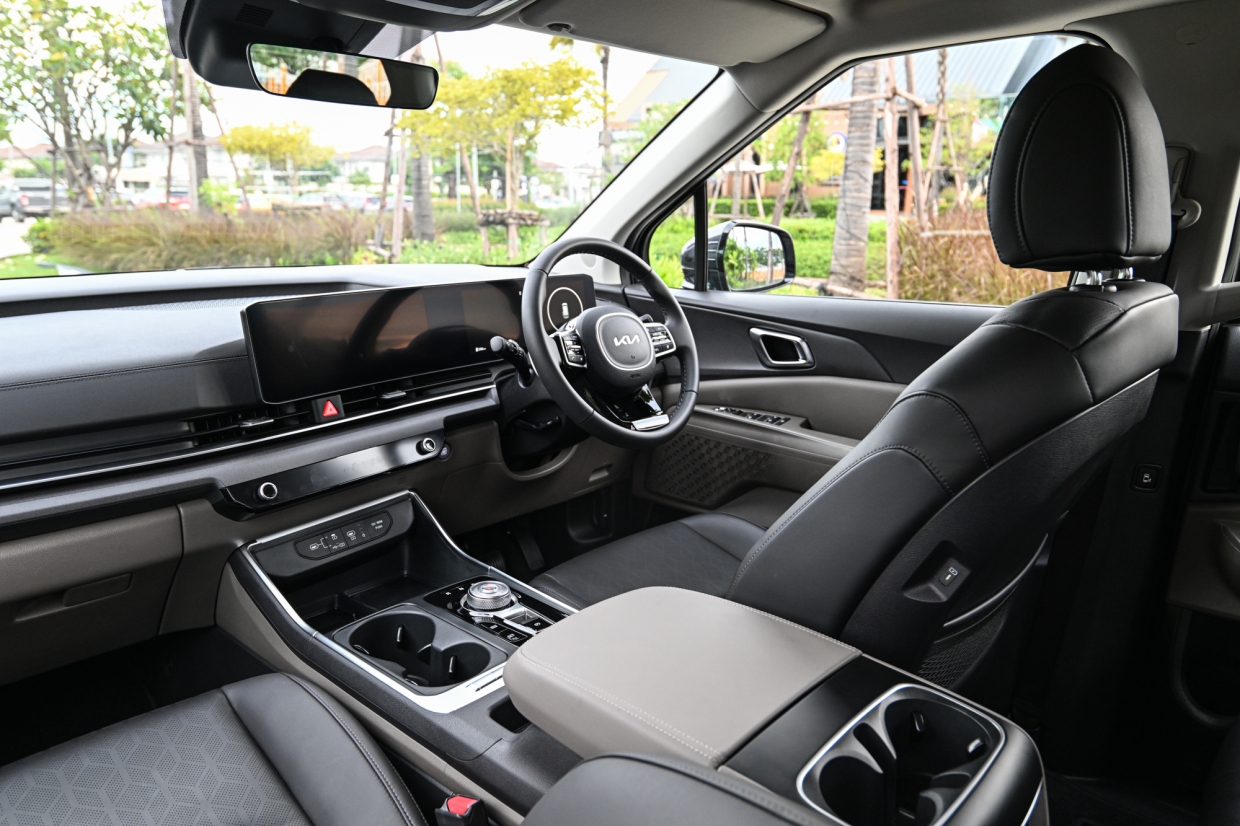 Kia Carnival HEV 7-seater ทั้ง 2 รุ่นได้รับการปรับให้มีพื้นที่ทางเดิน (Walkthrough access) ที่เอื้อต่อการเข้า-ออกเบาะหลังได้สะดวกยิ่งขึ้นสำหรับสมาชิกครอบครัวทุกคน โดยเฉพาะเด็ก และผู้สูงอายุ