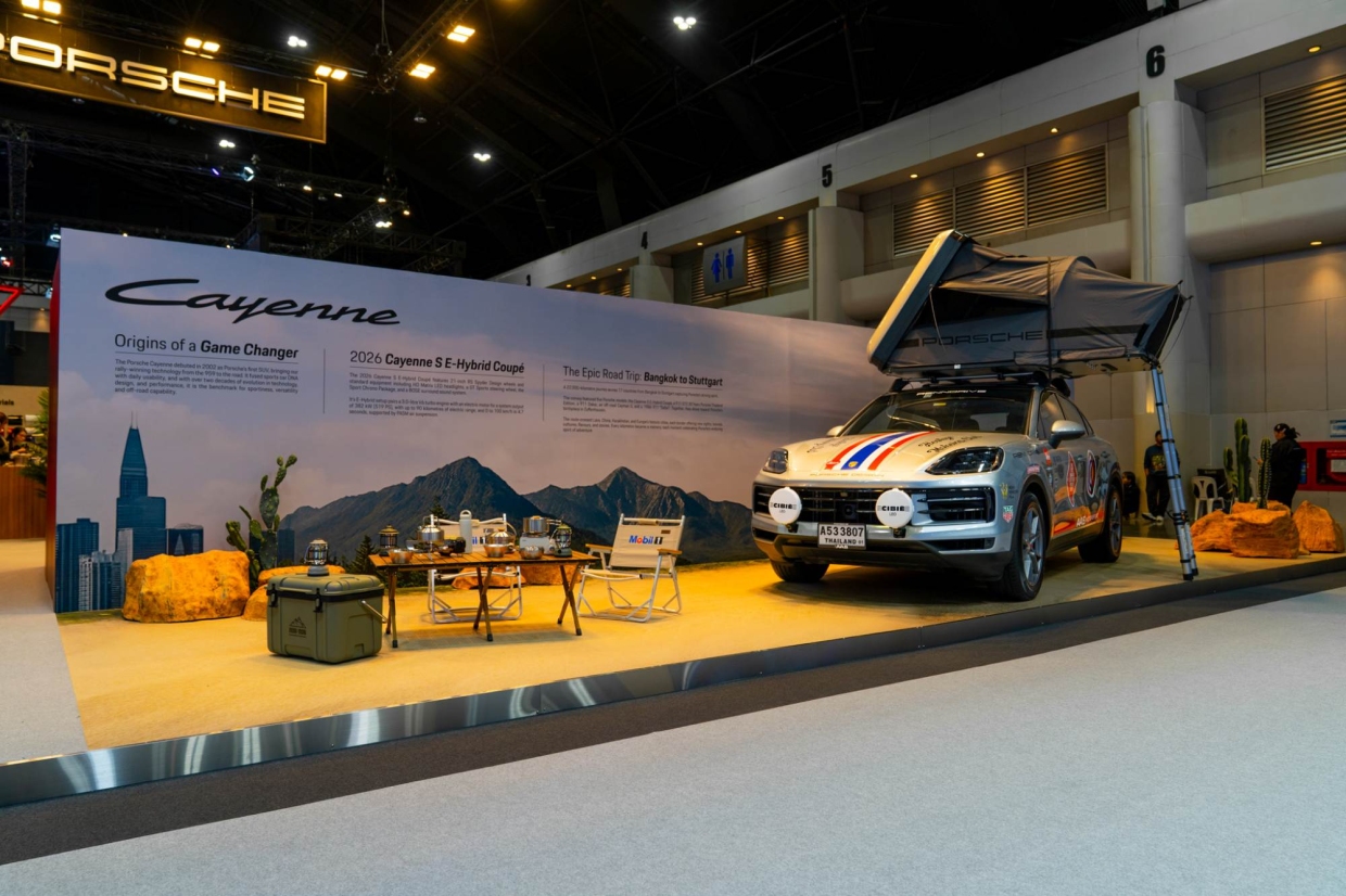พร้อมการจัดแสดงรถยนต์ไฮไลท์อย่าง Cayenne S E-Hybrid Coupe รุ่นประกอบที่มาเลเซีย ที่เข้าร่วมภารกิจ Epic Road Trip การเดินทางจากกรุงเทพฯ สู่ชตุทท์ทการ์ท ในเวลา 61 วัน ผ่าน 17 ประเทศ รวมระยะทางกว่า 22,000 กม. และ Cayenne S E-Hybrid Coupe รุ่นปรับโฉมปี 2026 ที่ประกอบในประเทศมาเลเซีย ที่แสดงให้เห็นถึงความทนทาน และมาตรฐานทางวิศวกรรมที่แข็งแกร่งของ Cayenne รุ่นประกอบในภูมิภาค