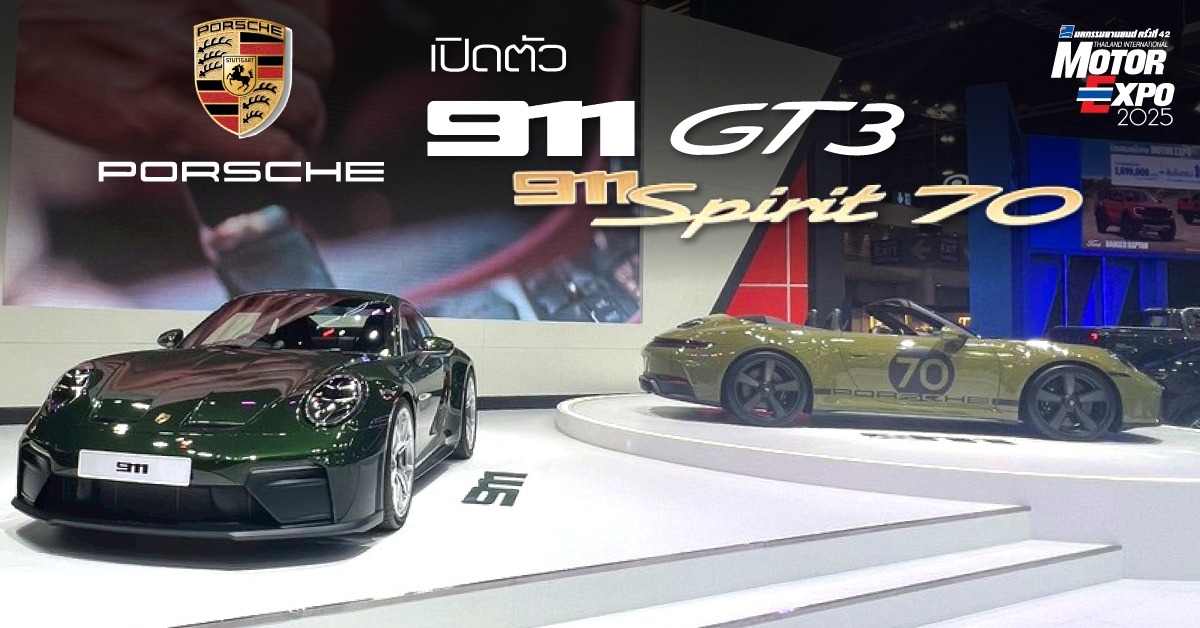 Porsche ประเทศไทย เปิดฉากความยิ่งใหญ่ในงาน “Thailand International Motor Expo 2025” (มหกรรมยานยนต์ ครั้งที่ 42) ณ IMPACT ชาลเลนเจอร์ เมืองทองธานี ตั้งแต่วันนี้-10 ธันวาคม 2568 เปิดตัว 911 Spirit 70 และ 911 GT3 รุ่นใหม่ ที่แสดงให้เห็นถึงความเหนือระดับทั้งในด้านการออกแบบ และวิศวกรรมของ Porsche โดยทั้ง 2 รุ่นได้ผสานเอกลักษณ์แห่งตำนานเข้ากับเทคโนโลยีล้ำสมัย เพื่อสร้างประสบการณ์ขับขี่ที่แตกต่างอย่างเหนือระดับ