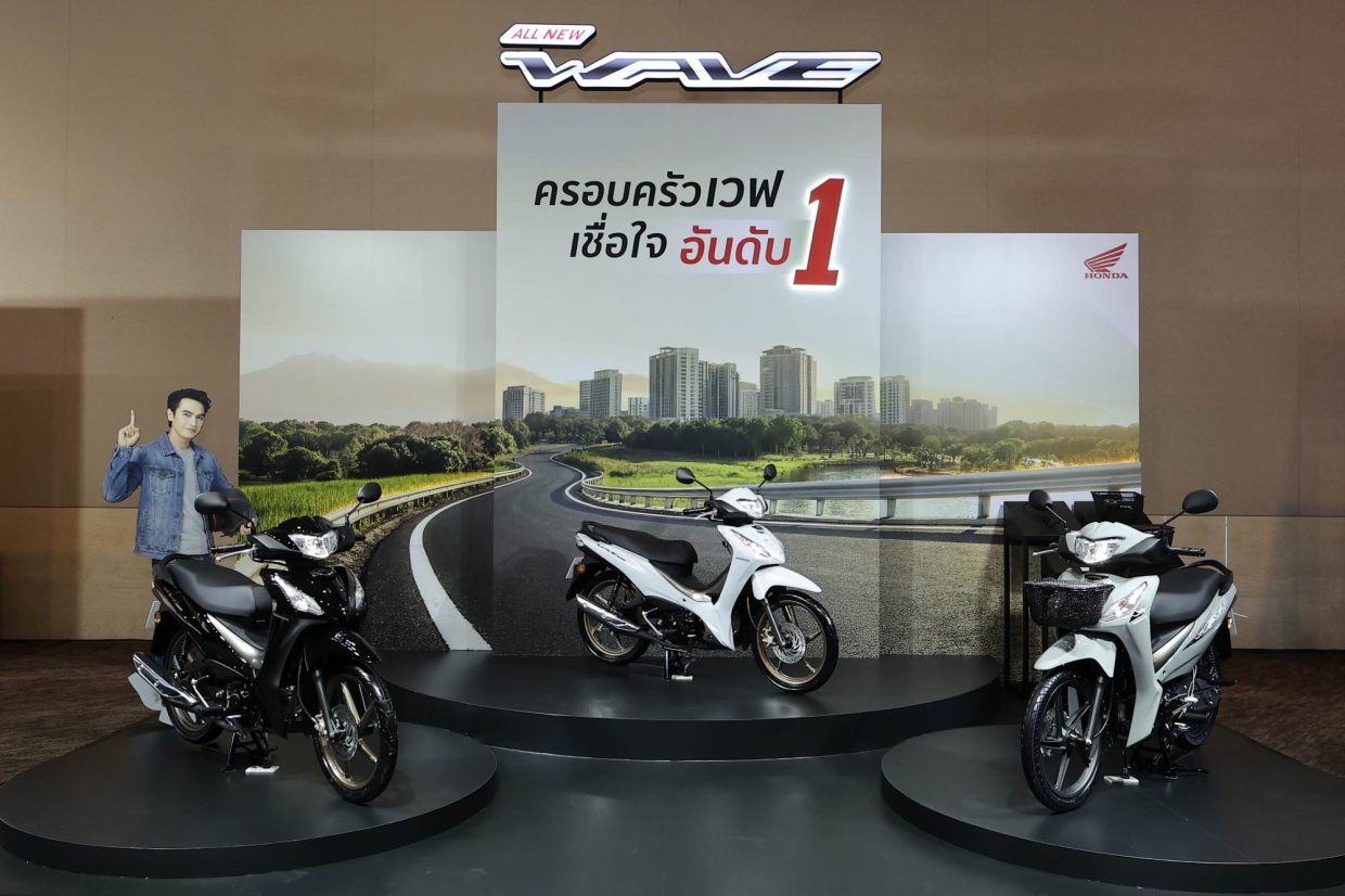 ปิดท้ายด้วย All New Honda Wave110 ปรับโฉมใหม่เพิ่มความทันสมัยยิ่งขึ้น โดดเด่นด้วยสีรถ และโลโก Emblem สีคอพเพอร์ มาพร้อมไฟเลี้ยวดีไซจ์นใหม่โฉบเฉี่ยว ไฟหน้า-ไฟท้ายแบบ LED เพิ่มความสะดวกสบายด้วยช่องเก็บของด้านหน้า ตะขอแขวนอเนกประสงค์ และช่องชาร์จ USB Type-C เสริมความปลอดภัยด้วยระบบ Combined Brake System (CBS) พร้อมยกระดับทั้งความปลอดภัย และความสะดวกสบาย มาพร้อมขุมพลัง Honda Smart Engine ขนาด 110 ซีซี ระบบหัวฉีด PGM-FI ที่แข็งแรง ทนทาน คล่องตัว และประหยัดน้ำมันด้วยอัตราการประหยัดน้ำมันสูงสุดถึง 71.4 กม./ลิตร All New Honda Wave110 พร้อมวางจำหน่ายในรุ่นล้อแมก Special Edition 2 สี ได้แก่ สีขาว-น้ำตาล และสีดำ-น้ำตาล ราคาแนะนำที่ 48,800 บาท และรุ่นล้อแมก มีให้เลือก 3 สี ได้แก่ สีเทา-น้ำตาล, สีน้ำเงิน และสีแดง ราคาแนะนำที่ 48,300 บาท รุ่นล้อซี่ลวด สตาร์ทมือ ดิสค์เบรค มีให้เลือกทั้งหมด 3 สี ได้แก่ สีเทา-ดำ, สีน้ำเงิน-ดำ และสีดำ-น้ำตาล ราคาแนะนำที่ 46,300 บาท รุ่นล้อซี่ลวด สตาร์ทเท้า ดุมเบรค วางจำหน่ายใน สีดำ ราคาแนะนำที่ 39,000 บาท