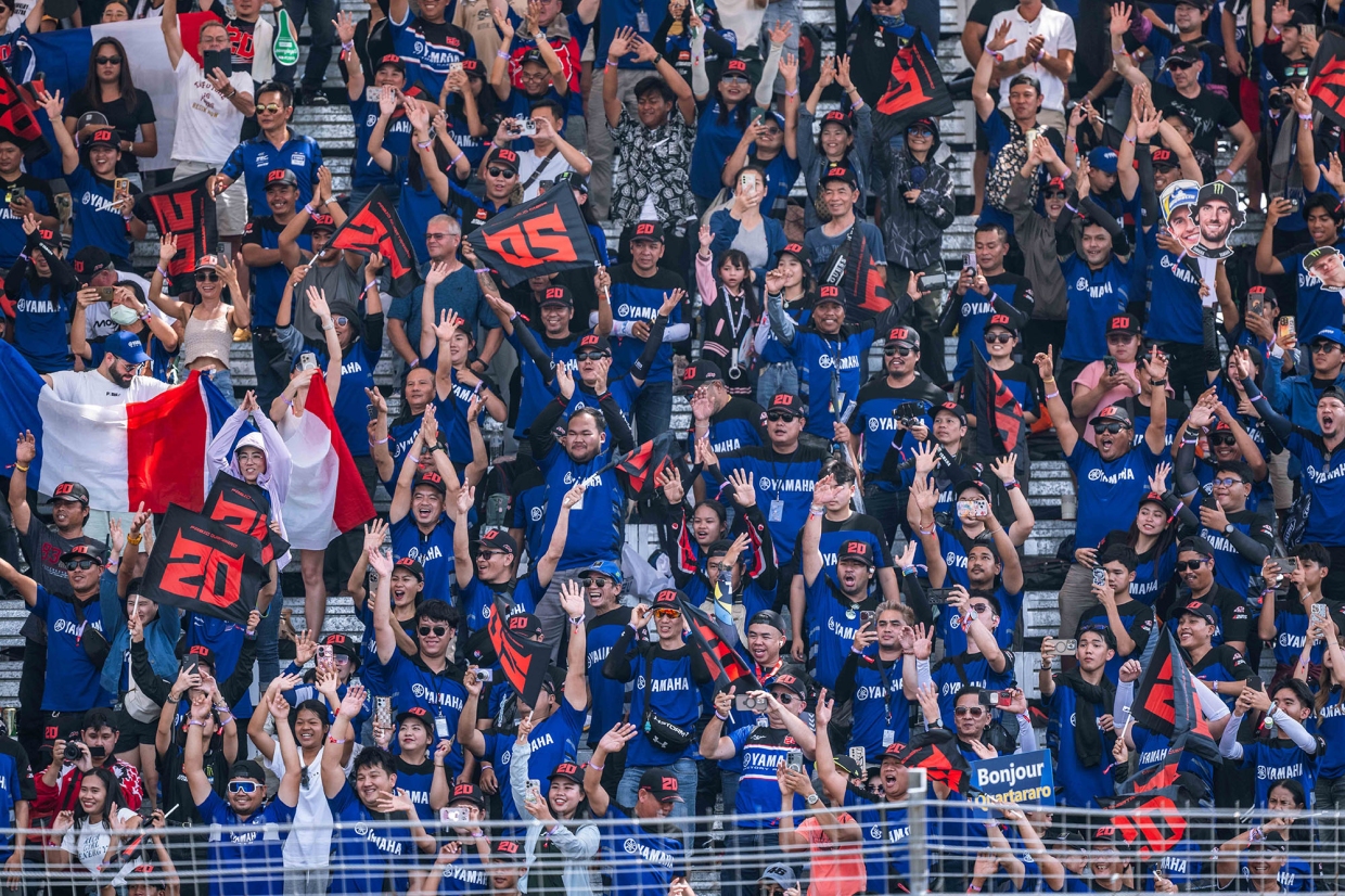 2. Quartararo Stand สำหรับกองเชียร์ “ฟาบิโอ กวาร์ตาราโร” แชมพ์โลกชาวฝรั่งเศส หมายเลข 20 ขวัญใจแฟน Yamaha ทั่วโลก มาพร้อมหมวก และธงเชียร์โทนสีน้ำเงินเข้ม สื่อถึงความเร็ว ความเฉียบคม และจิตวิญญาณนักสู้เจ้าของฉายา “El Diablo” (ปีศาจ)