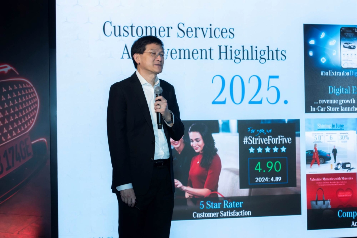 พุทธิ ตุลยธัญ รองประธานเจ้าหน้าที่บริหารและกรรมการฝ่ายบริการลูกค้า บริษัท เมอร์เซเดส-เบนซ์ (ประเทศไทย) จำกัด กล่าวว่า ปี 2568 ที่ผ่านมา ฝ่ายบริการลูกค้าประสบความสำเร็จอย่างโดดเด่น โดยคว้าอันดับที่ 2 ในการรักษาลูกค้าของ Mercedes-Benz ในระดับภูมิภาค และได้รับคะแนนความพึงพอใจของลูกค้า (5 Star Rater) สูงถึง 4.90 คะแนน โดยมีการเปิดตัวบริการใหม่ อาทิ Mercedes-Benz In-Car Store ในเดือนธันวาคม เพื่อให้ลูกค้าสามารถอัพเกรด หรือต่ออายุแพคเกจ Digital Extras ได้อย่างง่ายดายผ่านหน้าจอรถยนต์รุ่นที่รองรับ* รวมถึงการนำเสนอโปรแกรม Service Select ทางเลือกใหม่สำหรับการบำรุงรักษารถยนต์ที่มีอายุ 7 ปีขึ้นไป* พร้อมเสริมพอร์ทโฟลิโออะไหล่แท้ Mercedes-Benz ด้วย StarParts ซึ่งเป็นอะไหล่กลุ่มบำรุงรักษาที่คุ้มค่าสำหรับรถยนต์อายุ 5 ปีขึ้นไปโดยเฉพาะ และการแนะนำระบบ Xentry Workshop เพื่อยกระดับประสบการณ์ดิจิทอลของลูกค้าให้ดียิ่งขึ้น