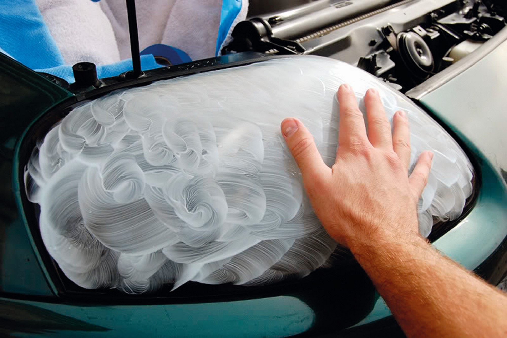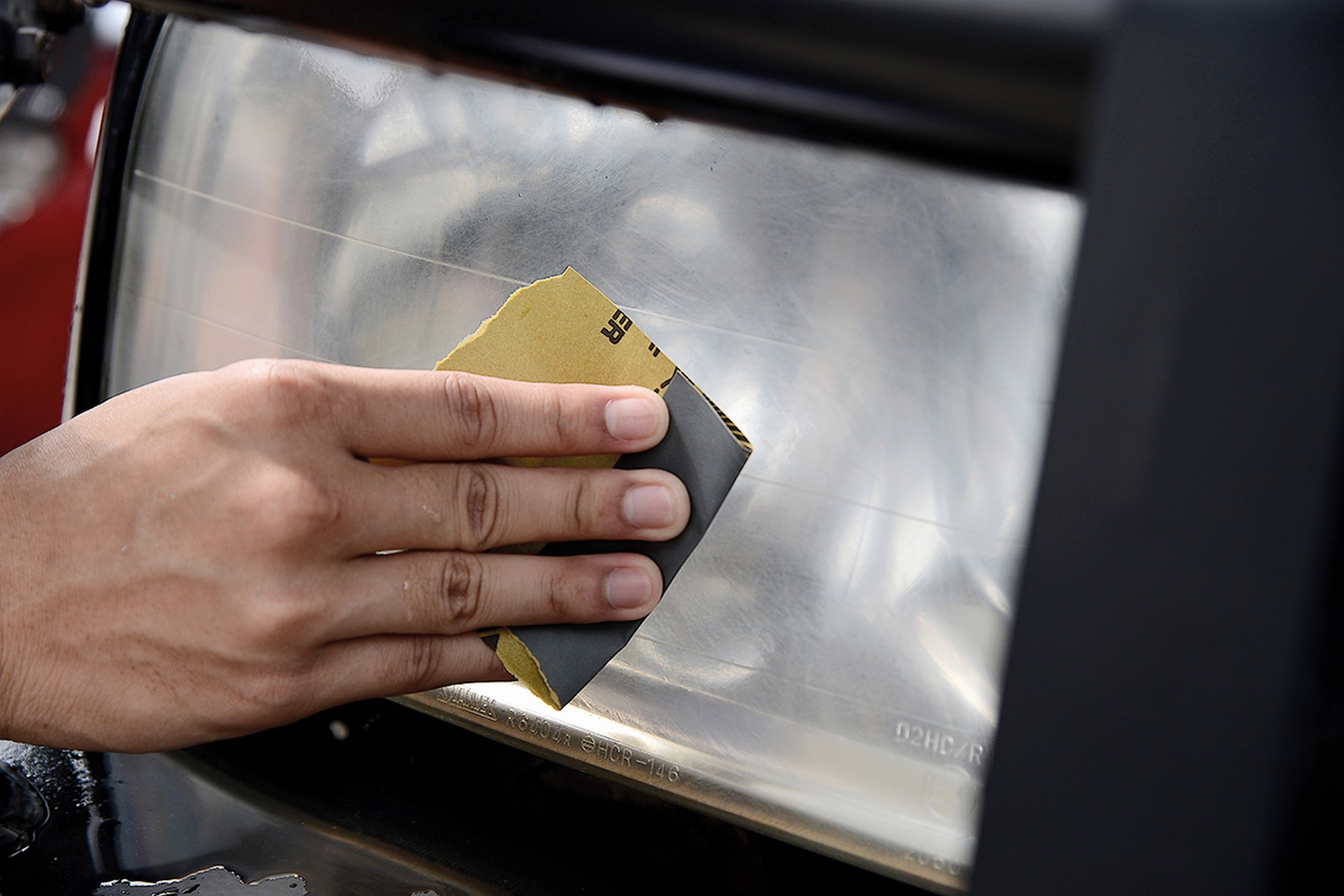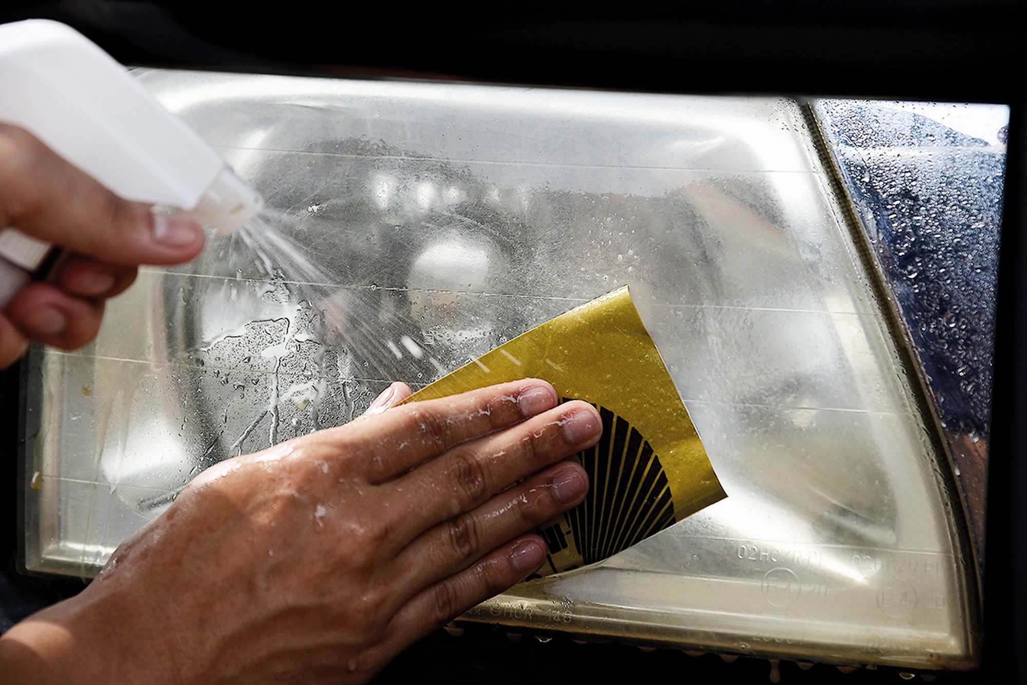 โคมไฟหน้ารถรุ่นใหม่มักเป็นพลาสติค เมื่อโดนความร้อนจากหลอดไฟ และแสงแดดเป็นเวลานาน มักเสื่อมสภาพ ขุ่นมัว มองแล้วขัดตา เหมือนเป็นรถเก่า DIY...คุณทำเองได้ ฉบับนี้ มีวิธีขัดโคมไฟหน้าพร้อมเคลือบแก้วมาฝากกันประเมินสภาพโคม ก่อนลงมือ โคมไฟที่ทำจากพลาสติค หมอง ขุ่นมัว ต้องสังเกตว่ามาจากส่วนใด ถ้าเป็นคราบดำอยู่ภายในโคม แสดงว่ามีสิ่งแปลกปลอมเล็ดลอดเข้าไปในโคมได้ ต้องถอดแยกส่วนประกอบของโคมออกมาเช็ดทำความสะอาดเท่านั้น และติดตั้งใหม่ให้สนิท ในกรณีที่มีคราบขุ่นเหลือง เนื้อพลาสติคหลุดลอกเป็นขุยบางๆ อยู่ภายนอกโคม ลักษณะนี้เกิดจากความร้อนจากแสงแดด ทำลายสารเคลือบโคมที่อยู่ภายนอก แบบนี้เราสามารถขัดให้กลับมาใสเหมือนเดิมได้ ตามวิธีที่แนะนำ หรือหากมีคราบดำใกล้ๆ หลอดไฟ (เป็นรอยไหม้) แสดงว่าหลอดไฟมีความร้อนสูงเกินไป จนตัวสะท้อนแสงชำรุด ต้องใช้หลอดที่ให้กำลังไฟตามคู่มือระบุ ถ้าเป็นเช่นนี้ซ่อมไม่ได้ ต้องเปลี่ยนโคมใหม่ ใสแล้ว ต้องเคลือบ หลังจากขัดโคมจนใสแล้ว ต้องเคลือบผิวโคมด้วยน้ำยาเคลือบแก้ว เพราะเนื้อผิวด้านนอกโคมที่เหลืองถูกเราขัดออกไปหมดแล้ว (รวมถึงสารเคลือบโคมจากโรงงานด้วย) ถ้าไม่เคลือบ โคมจะกลับมาขุ่นเหลืองเมื่อถูกรังสียูวีจากแสงแดด จึงต้องใช้น้ำยาเคลือบแก้วเคลือบโคมไฟอีกครั้ง ป้องกันรอยขีดข่วน และรังสียูวี ไม่ให้กลับมาขุ่นเหลืองเหมือนเดิม น้ำยาเคลือบแก้วหาซื้อได้ตามร้านอุปกรณ์รถยนต์ หรือคาร์แคร์ทั่วไป ราคาตั้งแต่หลักร้อยถึงหลักพันบาท โคมแก้ว ห้ามขัด ! นอกจากโคมไฟที่ทำจากพลาสติคแล้ว ในรถยนต์รุ่นเก่ามักเป็นโคมแก้ว โคมแบบนี้ห้ามขัดเพราะจะเป็นรอยขุ่นมัวมากกว่าเดิม แนะนำให้ถอดมาล้างทำความสะอาดจะดีกว่า โดยใช้ฟองน้ำ และน้ำยาล้างจาน ถูเบาๆ จนคราบควันสิ่งสกปรกหลุดออกไป โคมชนิดนี้จะมีอายุการใช้งานที่ยาวนานกว่าพลาสติค ทนแดด ทนฝน และสภาพอากาศได้เป็นอย่างดี จึงไม่ค่อยพบปัญหาโคมขุ่นเหลือง สูตรอื่นขัดได้ แต่อาจหมองเร็ว