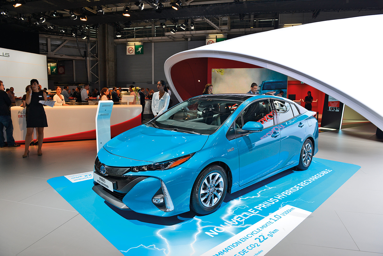 ความฟู่ฟ่าตื่นตาตื่นใจดูจะลดลงไปมากเมื่อเทียบกับงานระดับ "อินเตอร์" รายการก่อนๆ คือ บูธของยักษ์ใหญ่เมืองยุ่นซึ่งอยู่ในอาคาร 4 ผลงานที่ปรากฏตัวแบบ "ครั้งแรกในโลก" ไม่มีให้เห็น มีก็แต่ "ครั้งแรกในยุโรป" อย่างรถ โตโยตา ปรีอุส พลัก-อิน ไฮบริด (TOYOTA PRIUS PLUG-IN HYBRID) ที่กำลังอวดรูปโฉมอยู่ในขณะนี้ เป็นรถไฮบริดชนิดต้องมีการเสียบปลั๊กเพื่อชาร์จไฟ ที่กำลังจะออกจำหน่ายในหลายประเทศของยุโรป พร้อมคำยืนยันว่าสามารถวิ่งด้วยพลังไฟฟ้าล้วนๆ ได้ไกลกว่า 50 กม. ตัวถังขนาด 4.645x1.760x1.470 ม. ดัดแปลงมาเพียงเล็กน้อยจากตัวถังของ โตโยตา ปรีอุส (TOYOTA PRIUS) รุ่นล่าสุดซึ่งเป็นรถไฮบริดชนิดไม่ต้องเสียบปลั๊ก แต่หน้าตาดูดีกว่ากันเยอะเลย ส่วนระบบขับไฮบริดใช้เครื่องยนต์เบนซิน DOHC 4 สูบเรียง 1,798 ซีซี ทำงานร่วมกับมอเตอร์ไฟฟ้า และแบทเตอรีลิเธียม-ไอออน ได้กำลังสุทธิสูงสุด 90 กิโลวัตต์/122 แรงม้า