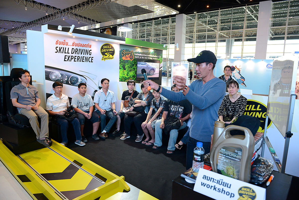 โรงเรียนพัฒนาทักษะการขับรถขับเคลื่อน 4 ล้อ นำทีมครูฝึกร่วมพูดคุย กับผู้สนใจเรื่องรถขับเคลื่อน 4 ล้อ พร้อมแนะนำหลักสูตรใหม่ "SPIRIT PLUS" หลักสูตรสำหรับรถขับเคลื่อน 4 ล้อ แบบฟูลล์ไทม์ ภายในงานยังมีสนามจำลองสถานการณ์ต่างๆ ให้ทดลองนั่งกันอีกด้วย สำหรับผู้สนใจสามารถสอบถาม และลงทะเบียนได้ที่บูธ ภายใน ชาลเลนเจอร์ 2