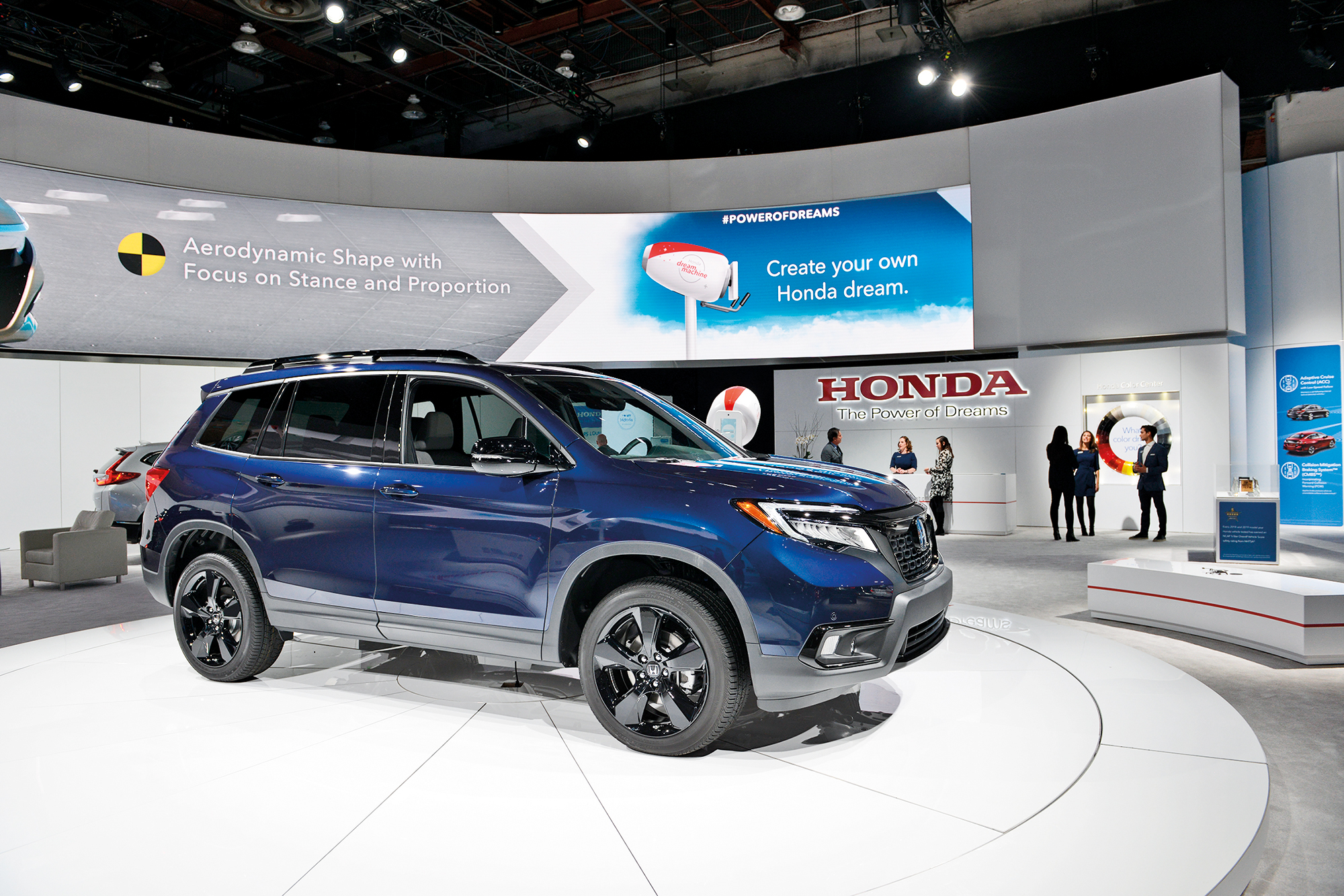 ปรากฏตัวแบบ WORLD DEBUT หรือ "ครั้งแรกในโลก" ที่งานมหกรรมยานยนต์ลอสแองเจลิส เมื่อปลายเดือนพฤศจิกายน 2018 และฉายซ้ำ 2 ที่งานนี้เช่นกัน คือ ฮอนดา พาสสปอร์ท (HONDA PASSPORT) จุดโฟคัสสายตาในบูธของยักษ์รองเมืองปลาดิบ เป็น MID-SIZE CROSSOVER SUV หรือรถกิจกรรมกลางแจ้งข้ามพันธุ์ขนาดกลาง ในตัวถังขนาด 4.839x1.996x1.819 ม. ติดตั้งเก้าอี้ที่นั่ง 2 แถว ซึ่งออกแบบขึ้นใหม่ทั้งหมดตั้งแต่หัวจรดหาง เป็นรถญี่ปุ่นที่ออกแบบ และพัฒนาโดยทีมงานในเมืองมะกัน รวมทั้งจะใช้โรงงานในรัฐอลาบามาของสหรัฐอเมริกาเป็นที่ผลิตด้วย การผลิตที่ว่านี้เริ่มต้นแล้วเมื่อต้นเดือนธันวาคมที่เพิ่งผ่านพ้นไป ส่วนการขายกำหนดไว้แล้วว่าจะเริ่มตอนต้นปีใหม่ เป็นรถที่จะมีเครื่องยนต์ขนาดเดียว คือ เครื่องเบนซินฉีดเชื้อเพลิงโดยตรง วี 6 สูบ 3,471 ซีซี 209 กิโลวัตต์/280 แรงม้า ส่งกำลังสู่ล้อคู่หน้า หรือทั้งคู่หน้า และคู่หลังผ่านระบบเกียร์อัตโนมัติ 9 จังหวะ