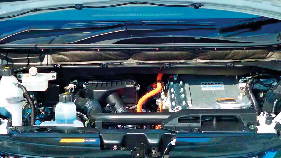 และยังมีรุ่นขับเคลื่อนด้วยมอเตอร์ไฟฟ้า 8 รุ่นย่อย โดยมีให้เฉพาะรุ่นขับเคลื่อนล้อหน้าเท่านั้น ใช้เครื่องยนต์ 1.2 ลิตร 83 แรงม้า รหัส HR12DE กับมอเตอร์ไฟฟ้า 136 แรงม้า รหัส EM57 ตัวเดียวกับ นิสสัน ลีฟ (NISSAN LEAF) แต่มีหลักการทำงานแบบเดียวกับ นิสสัน โนท คือ ใช้เครื่องยนต์ปันไฟฟ้าให้มอเตอร์ไฟฟ้า ส่วนอัตราสิ้นเปลืองเฉลี่ยอยู่ที่ 26.2 กม./ลิตร