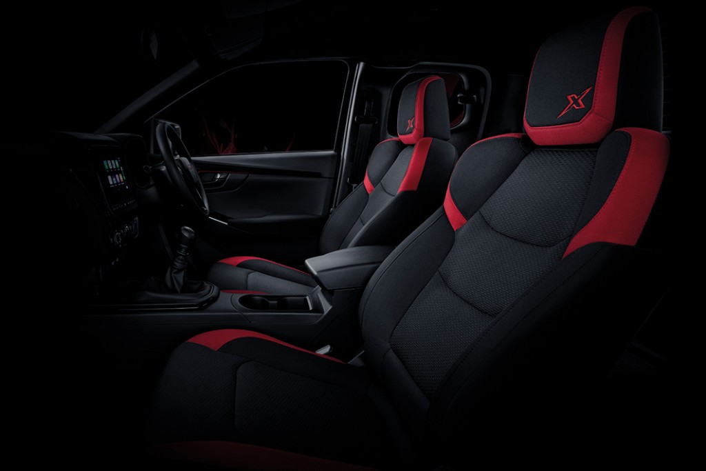 เบาะนั่งทูโทนสีดำ/แดง ทรงสปอร์ท โอบกระชับ นั่งสบาย พร้อมสัญลักษณ์ X สีแดงสุดเท่ที่เบาะคู่หน้า ชุดคันเกียร์พร้อมเบรคมือ ดีไซจ์นหุ้มหนัง เสริมอารมณ์สปอร์ทด้วยด้ายแดง