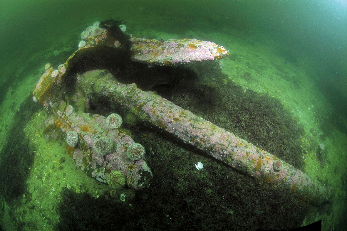 ภาพสมอเรือรบเยอรมนีที่ถ่ายได้จากใต้มหาสมุทรบริเวณสกาปา ฟโลว์