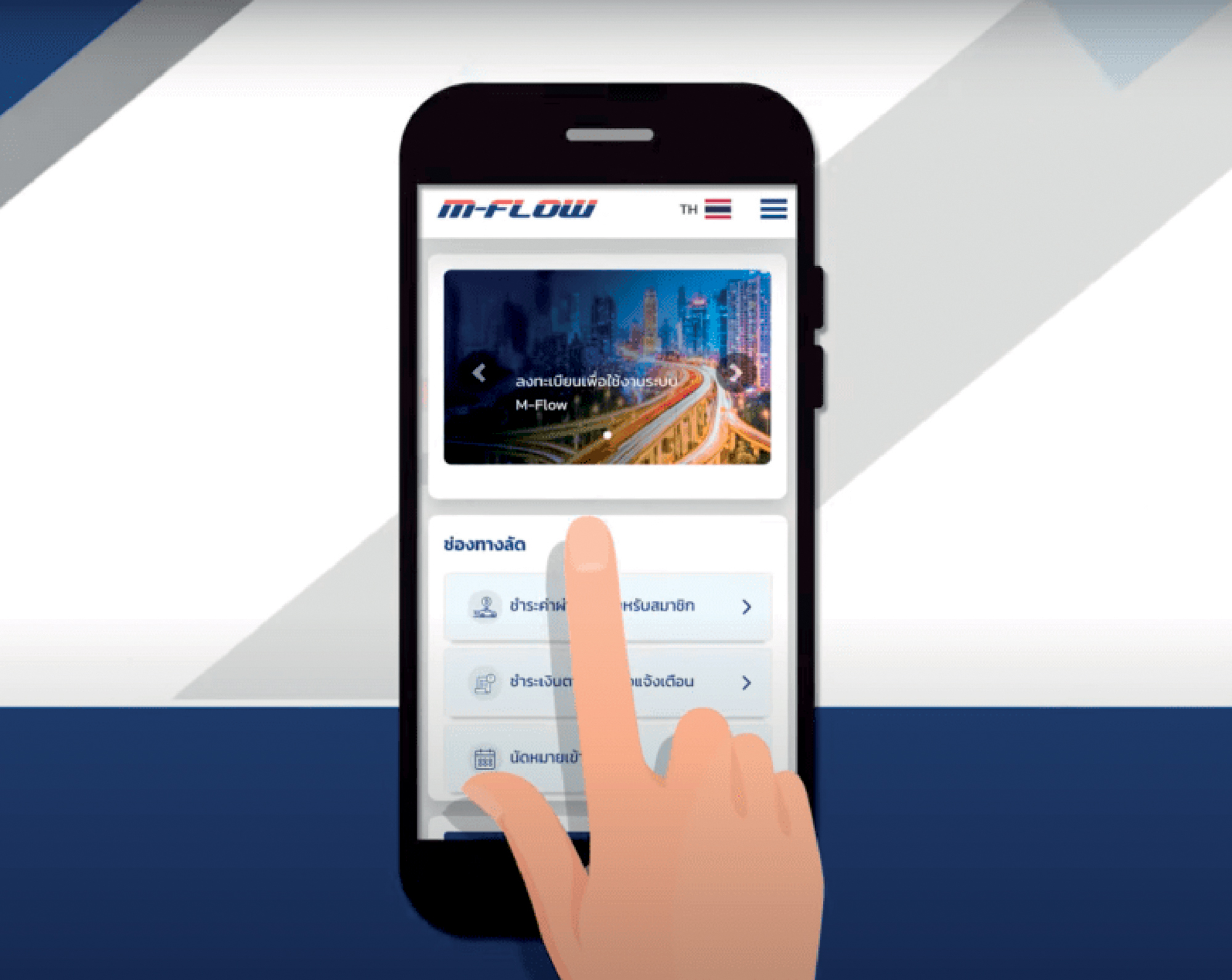 5. การจ่ายเงิน M-FLOW เป็นระบบวิ่งก่อนจ่ายทีหลังผ่านแอพพลิเคชัน (ไม่ต้องจ่ายขาออก)
