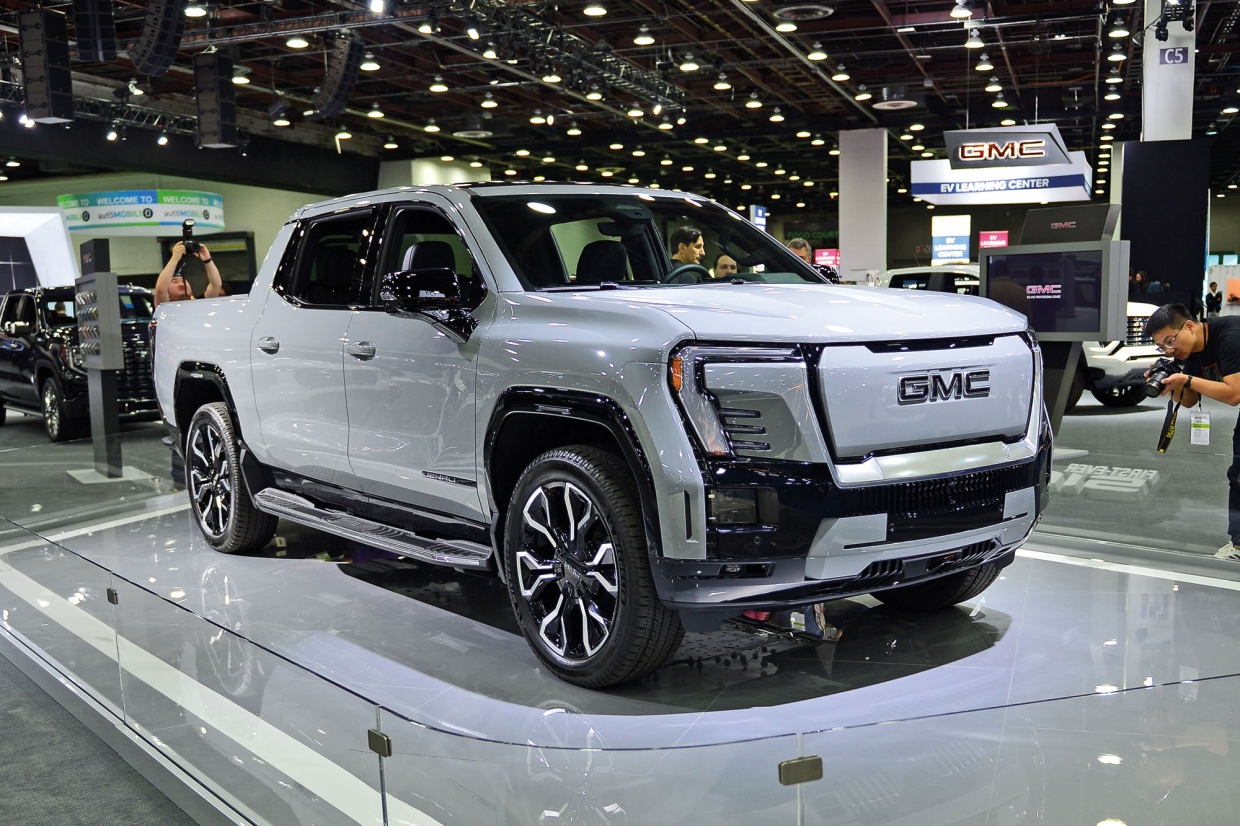 GMC ผู้ผลิตรถยนต์ในสังกัดของยักษ์ใหญ่ GM หรือ GENERAL MOTORS COMPANY ก็มีรถพิคอัพพลังไฟฟ้าล้วนๆ คือ GMC SIERRA EV (จีเอมซี สิเอร์รา อีวี) ซึ่งทีมงานของเราเพิ่งได้สัมผัสตัวจริงเสียงไม่จริงเป็นครั้งแรกที่งานนี้เช่นกัน เป็นคู่แฝดต่างฝากับรถพลังไฟฟ้า CHEVROLET SILVERADO EV (เชฟโรเลต์ ซิลเวอราโด อีวี) ที่เพิ่งผ่านตาไป แต่ติดตั้งอุปกรณ์ต่างๆ ครบครันกว่า และค่าตัวแพงกว่า มีกำหนดเริ่มจำหน่ายในฤดูร้อนปี 2024 และในระยะแรกจะมีรถโมเดลเดียว คือ GMC SIERRA EV DENALI EDITION 1 (จีเอมซี สิเอร์รา อีวี เดนาลี เอดิชัน 1) ติดตั้งระบบขับซึ่งให้กำลังสูงถึง 563 กิโลวัตต์/754 แรงม้า เมื่อวิ่งอยู่ใน MAX POWER MODE มีระยะเดินทาง 400 ไมล์ หรือประมาณ 640 กม. เมื่อชาร์จไฟเต็ม และการชาร์จไฟแบบเร่งด่วนด้วยไฟฟ้ากระแสตรง ณ สถานีชาร์จไฟเพื่อให้รถวิ่งได้ไกล 100 ไมล์ หรือประมาณ 160 กม. ใช้เวลาประมาณ 10 นาที