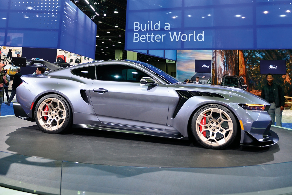 ในงานนี้มีรถคูเปพลังสูงติดป้ายชื่อ FORD MUSTANG (ฟอร์ด มัสแตง) จอดอยู่หลายคัน FORD MUSTANG GTD (ฟอร์ด มัสแตง จีทีดี) ที่กำลังอวดตัวอยู่นี้ เป็นผลงานรังสรรค์ของทีมงานพิเศษ ซึ่งค่าย “วงรีสีฟ้า” ตั้งชื่อว่า MUSTANG GTD TEAM เพิ่งเปิดตัวเมื่อเดือนสิงหาคม 2023 และต้องรออีกประมาณ 1 ปี จึงจะเริ่มการผลิต ที่โรงงานซึ่งตั้งอยู่ในเมือง FLAT ROCK รัฐ MICHIGAN เป็นรถรุ่นปี 2025 ที่จะจำกัดจำนวนผลิตระหว่าง 1,000-2,000 คัน และคาดว่าจะตั้งราคาค่าตัวไว้สูงมาก คือ ระดับ 300,000 เหรียญ หรือประมาณ 11 ล้านบาทไทย พัฒนาจากรถแข่ง FORD MUSTANG GT3 (ฟอร์ด มัสแตง จีที 3) เพื่อให้เป็นรถที่วิ่งได้ตามท้องถนนโดยถูกกฎหมาย ติดตั้งเครื่องยนต์เบนซิน วี 8 สูบ ความจุ 5.2 ลิตร ติดซูเพอร์ชาร์เจอร์ ซึ่งให้กำลังสูงกว่า 597 กิโลวัตต์/800 แรงม้า และส่งกำลังสู่ล้อคู่หลังผ่านระบบเกียร์อัตโนมัติคลัทช์คู่ 8 จังหวะ