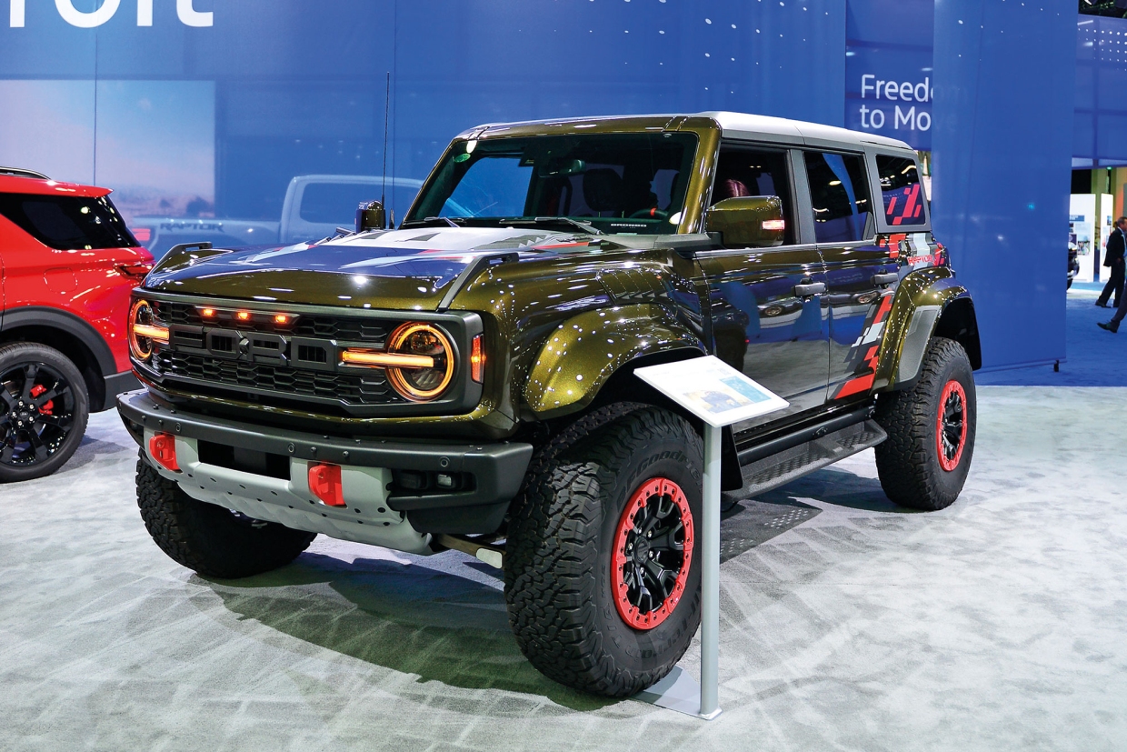 FORD BRONCO RAPTOR (ฟอร์ด บรองโก แรพเตอร์) โมเดลหัวกะทิของของรถกิจกรรมกลางแจ้งพันธุ์แท้ FORD BRONCO รุ่นปัจจุบัน ซึ่งมีให้เลือกใช้ทั้งตัวถัง 2 ประตู 4 ที่นั่ง และ 4 ประตู 5 ที่นั่ง เพิ่งเปิดตัวเมื่อเดือนสิงหาคม 2023 และมีกำหนดออกโชว์รูมทั้งในฐานะรถรุ่นปี 2024 และรถกิจกรรมกลางแจ้งค่าตัวแพงที่สุดของค่าย “วงรีสีฟ้าขาว” ราคาค่าตัวที่กำหนดไว้เริ่มต้นที่ 89,835 เหรียญ หรือประมาณ 3.23 ล้านบาทไทย เป็นรถโมเดลพิเศษที่ออกแบบ/พัฒนาโดยเน้นความแรง และความเร็ว ตัวถังทั้ง 2 ประตู และ 4 ประตู ที่ดูดุดัน และทรงพลัง ติดตั้งเครื่องยนต์ ECO BOOST เทอร์โบเบนซินฉีดตรง DOHC วี 6 สูบ 3.0 ลิตร 312 กิโลวัตต์/418 แรงม้า ส่งกำลังสู่ล้อคู่หน้า/คู่หลังผ่านระบบเกียร์อัตโนมัติ 10 จังหวะ (RAPTOR ซึ่งเริ่มใช้เมื่อปี 2010 เป็นชื่อรอง ที่ค่าย “วงรีสีฟ้า” สงวนไว้สำหรับรถพิคอัพ รถกิจกรรมกลางแจ้ง และรถบรรทุกสมรรถนะสูงเท่านั้น)