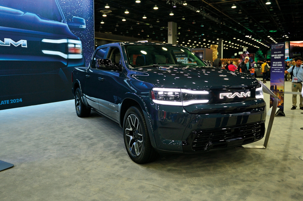 เพิ่งเปิดตัว แต่ต้องรอจนถึงปีโมเดล 2025 จึงจะเริ่มการจำหน่าย คือ RAM 1500 REV (แรม 1500 อาร์อีวี) รถพิคอัพพลังไฟฟ้าล้วนๆ แบบแรกของค่าย STELLLANTIS BV กลุ่มบริษัทผู้ผลิตรถยนต์ “หน้าเก่าในชื่อใหม่” ที่เพิ่งก่อกำเนิดเมื่อต้นปี 2021 พัฒนาต่อกิ่งต่อยอดจากรถพิคอัพ RAM 1500 ที่จำ หน่ายมานมนาน โดยเปลี่ยนระบบขับ จากขับด้วยเครื่องยนต์สันดาปภายใน เป็นขับด้วยพลังไฟฟ้าล้วนๆ ซึ่งโมเดลที่ทรงพลังที่สุดให้กำลังสูงสุดระดับ 488 กิโลวัตต์/654 แรงม้า ติดตั้งแบทเตอรีมาตรฐานขนาดความจุ 168 กิโลวัตต์ชั่วโมง ซึ่งเมื่อชาร์จไฟเต็ม รถซึ่งสามารถทำอัตราเร่ง 0-96 กม./ชม. ในเวลาเพียง 4.4 วินาทีนี้ จะวิ่งได้ไกลถึง 350 ไมล์ หรือประมาณ 560 กม. หากยังไม่พอใจเรื่องระยะทาง ก็ยังมีออพชันซึ่งเป็นแบทเตอรีขนาดใหญ่มีความจุ 229 กิโลวัตต์ชั่วโมง ให้เลือกใช้อีกต่างหาก แบทเตอรีแบบพิเศษนี้จะทำให้ระยะเดินทางเพิ่มขึ้นเป็น 500 ไมล์ หรือประมาณ 800 กม. นั่นเทียว