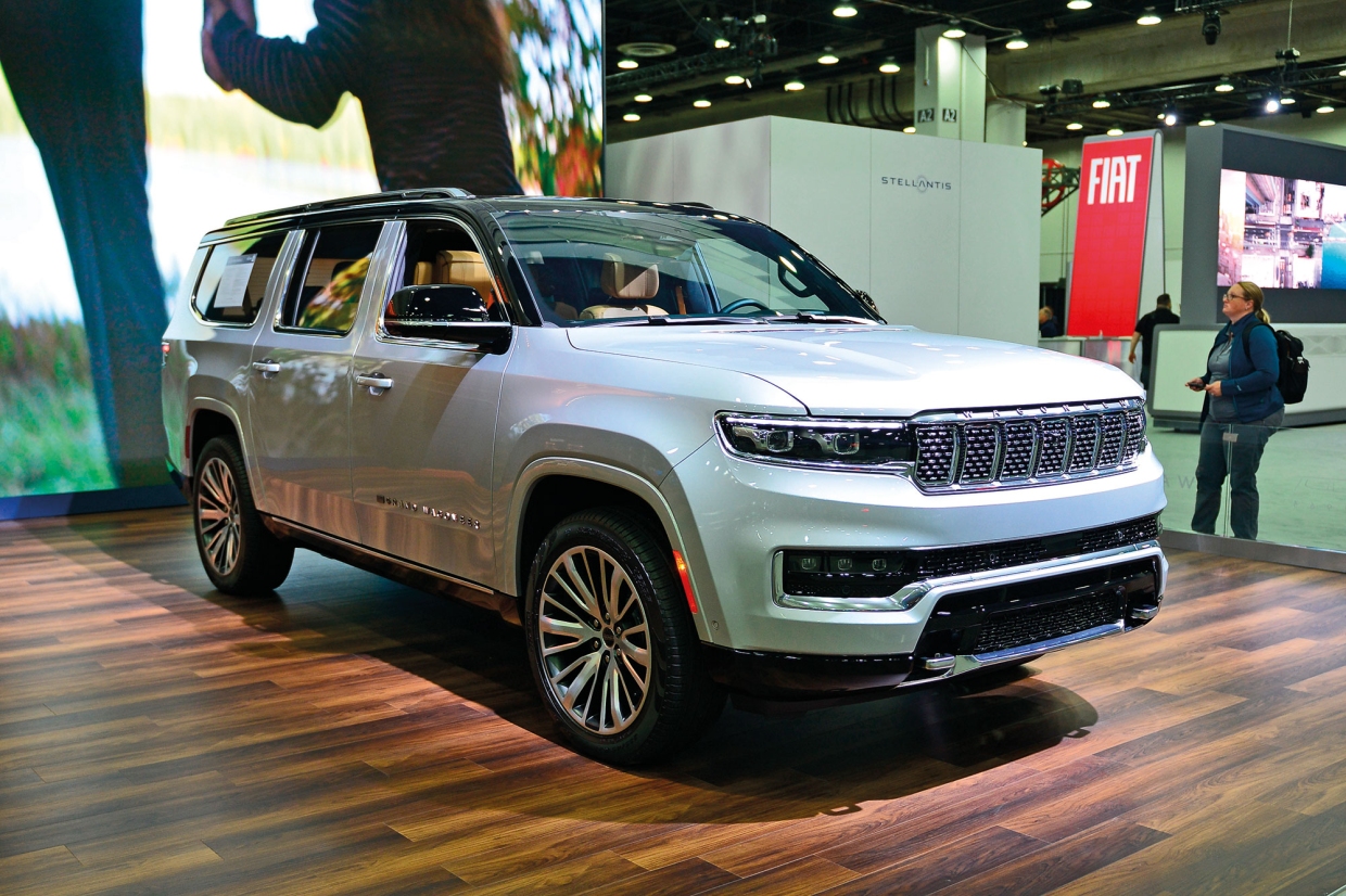 ได้สัมผัสเป็นครั้งแรกที่งานนี้เช่นกัน คือ รถกิจกรรมกลางแจ้งข้ามพันธุ์ขนาดโตเต็มพิกัดติดป้ายชื่อ GRAND WAGONEER (กแรนด์ แวกอเนียร์) รถหรูซึ่งค่าตัวที่ซื้อขายในสหรัฐอเมริกาเริ่มต้นที่ 91,140 เหรียญ หรือประมาณ 3.28 ล้านบาทไทย พัฒนาต่อกิ่งต่อยอดจากรถ WAGONEER โดยติดตั้งเครื่องยนต์ขนาดโตกว่า และแรงกว่า พร้อมเพิ่มเติมความหรูหรา ฟู่ฟ่า และอุปกรณ์อำนวยความสะดวกหลายรายการ เครื่องยนต์ที่ว่านี้เป็นเครื่องเบนซิน OHV วี 8 สูบ 16 วาล์ว 6,417 ซีซี 351 กิโลวัตต์/471 แรงม้า หรือเครื่องทวินเทอร์โบเบนซินฉีดตรง DOHC 6 สูบเรียง 2,993 ซีซี ที่ให้กำลังสูงถึง 381 กิโลวัตต์/510 แรงม้า ส่วนระบบเกียร์เหมือนเดิม คือ เกียร์อัตโนมัติ 8 จังหวะ เป็นรถที่ยากจะบอกว่าคันไหนเป็นคันไหน เพราะตัวถังมีขนาดเท่ากัน คือ 5.453x2.124x1.964-2.025 ม. หน้าตาก็ดูเหมือนๆ กัน ต้องสังเกตจากรายละเอียดเล็กๆ น้อยๆ และป้ายชื่อรถที่ติดอยู่ตรงสีข้างของตัวถังทั้ง 2 ด้าน
