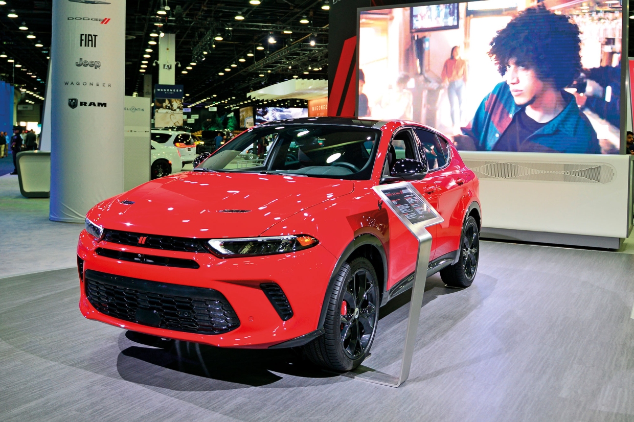 ผลงานใหม่เพียงชิ้นเดียวในบูธของ DODGE (ดอดจ์) ซึ่งก็เป็นผู้ผลิตรถยนต์อีกรายในสังกัดของกลุ่มบริษัทรถยนต์ STELLANTIS NV ที่สมควรนำเรื่องราวมาบรรจุไว้ในรายงานนี้ คือ รถกิจกรรมกลางแจ้งขนาดเล็กกะทัดรัดติดป้ายชื่อ DODGE HORNET (ดอดจ์ ฮอร์เนท) ที่กำลังอวดรูปทรงองค์เอวอยู่นี้ เป็นรถอนุกรมใหม่ในชื่อใหม่ และเป็นคู่แฝดต่างฝากับรถ ALFA ROMEO TONALE (อัลฟา โรเมโอ โตนาเล) ซึ่งเริ่มจำหน่ายในอิตาลีเมื่อต้นปี 2022 เพิ่งเริ่มจำหน่ายในเมืองมะกันในฐานะรถรุ่นปี 2023 และมีรถให้เลือกเพียง 2 โมเดล คือ DODGE HORNET GT กับ DODGE HORNET R/T PHEV โมเดลแรกติดตั้งเครื่องยนต์เครื่องยนต์เทอร์โบเบนซิน 4 สูบเรียง 1,995 ซีซี 268 แรงม้า และเกียร์อัตโนมัติ 9 จังหวะ ส่วนโมเดลหลังติดตั้งระบบ PLUG-IN HYBRID หรือไฮบริดชนิดต้องมีการเสียบปลั๊กเพื่อชาร์จไฟ ซึ่งให้กำลังรวมสูงสุด 215 กิโลวัตต์/288 แรงม้า