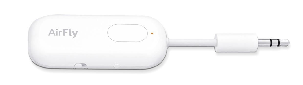 การรับชมความบันเทิงบนเครื่องบินต้องใส่หูฟังแบบมีสาย แต่ทว่าหูฟังของคุณเป็นแบบไร้สาย คุณเพียงเสียบ AIRFLY PRO เข้าไป ตัวเครื่องจะแปลงสัญญาณเสียงผ่าน BLUETOOTH ไปยังหูฟังของคุณทันที นอกจากนี้ ยังสามารถใช้งานได้กับแจค 3.5 มม. ที่มีอยู่ในอุปกรณ์อื่นๆ เช่น ลู่วิ่งออกกำลังกาย อีกทั้งคุณยังสามารถใช้งานย้อนกลับได้โดยการส่งสัญญาณจากสมาร์ทโฟนของคุณไปยังช่อง AUX ของรถที่คุณเช่ามา