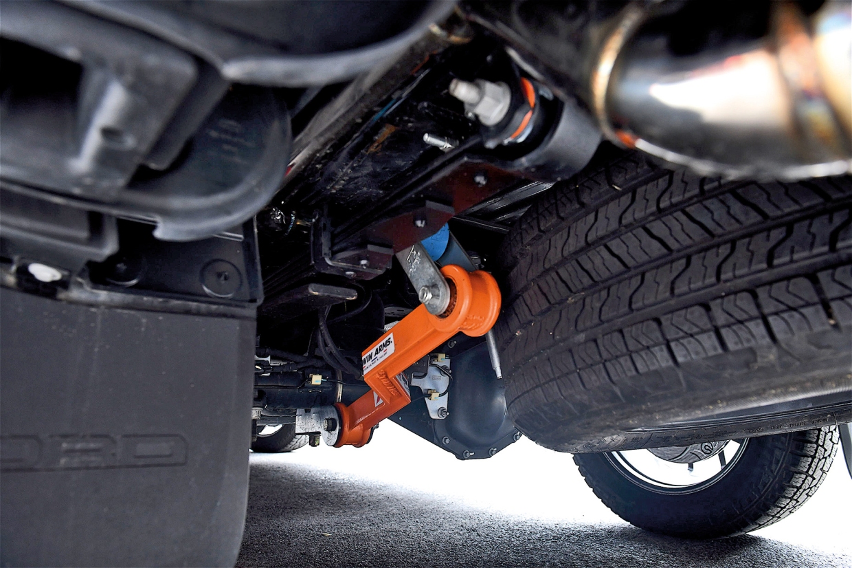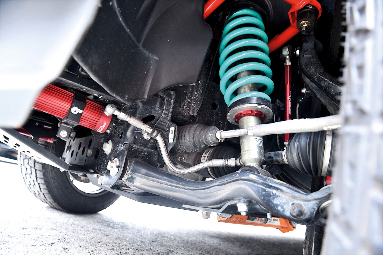 อัพเกรดช่วงล่างใหม่ชุดใหญ่ จับจัดทรงใหม่ โหลด 2 นิ้ว ไม่ย้ายแหนบ แต่เปลี่ยนแหนบที่สเปคโหลดโดยตรง และเปลี่ยนปีกนกปรับองศา โหลด PROFENDER (พโรเฟนเดอร์) ที่ทำจากเหล็กโคโมรี ซึ่งแข็งแรง ทนทาน จับเปลี่ยนชอคอับหน้า ซับแทงค์ ปรับ 8 (MONOTUBE) จาก PROFENDER แกนขนาด 16 มม. ลูกสูบ 46 มม. กระบอกขนาด 54 มม. มาพร้อมซับแทงค์ สปริงโหลด ด้านหน้าจาก OZY (ออสซี) เพิ่มเติมสมรรถนะช่วงล่าง ด้วยกันโคลงด้านหน้า CONTROL ARMS ของ AC POWER (เอซี เพาเวอร์)