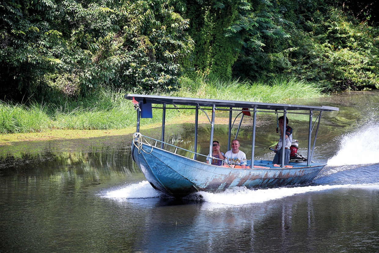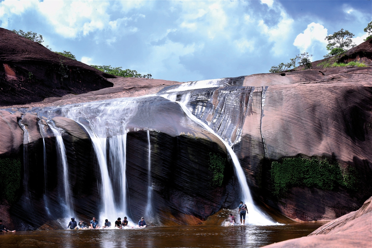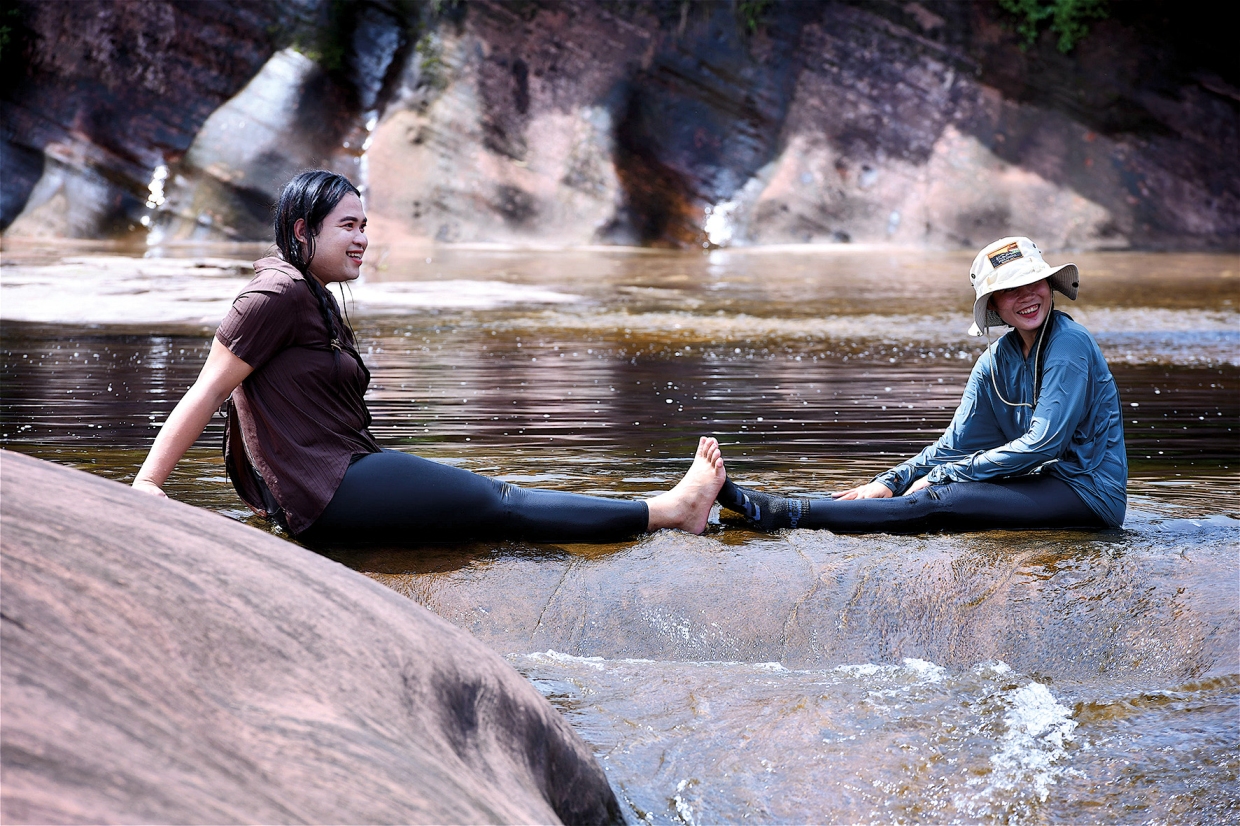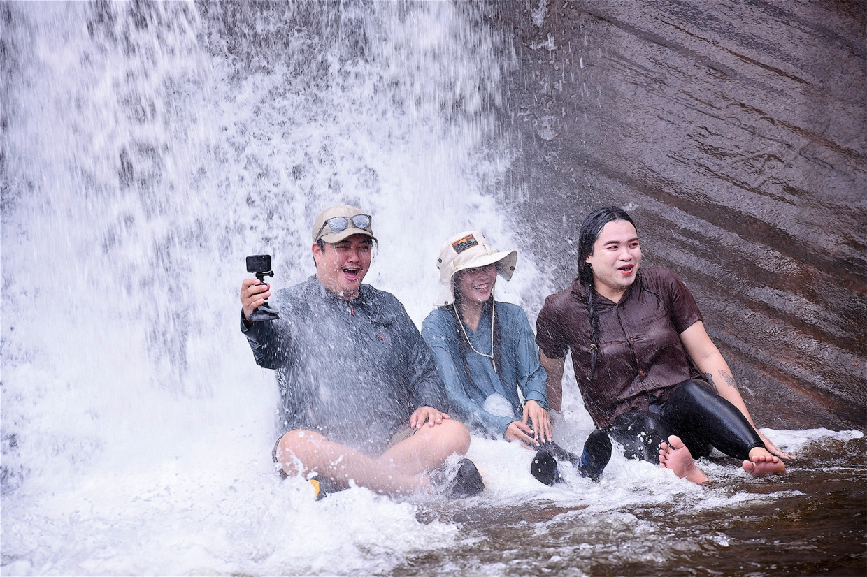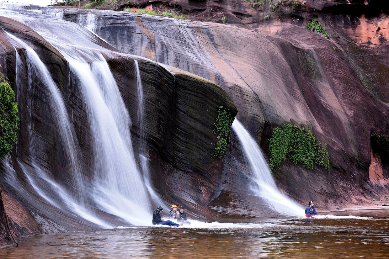 เมื่อเที่ยวภูทอกเสร็จ เราเดินทางกันต่อไปยังน้ำตกถ้ำพระ หรือน้ำตกถ้ำพระภูวัว ตามทางหลวงหมายเลข 3009 อีกประมาณ 28 กม. ที่ตั้งอยู่บริเวณเขตรักษาพันธุ์สัตว์ป่าภูวัว บ้านถ้ำพระ ต. โสกก่าม อ. เซกา จ. บึงกาฬ โดยเราต้องจอดรถไว้ที่บริเวณท่าเรือ 1 หรือ 2 ก็ได้ แล้วต้องนั่งเรือเข้าไปตามลำคลองประมาณ 10 นาที หรือ 1 กม. จากนั้นเดินเท้าต่อไปอีก 500 ม. ก็จะถึงตัวน้ำตก โดยมีค่าบริการนั่งเรือ เด็กคนละ 30 บาท ส่วนผู้ใหญ่คนละ 50 บาท และมีค่าเข้าชมน้ำตกเมื่อขึ้นฝั่งอีกคนละ 20 บาท สำหรับเด็ก ส่วนผู้ใหญ่คนละ 30 บาท โดยน้ำตกถ้ำพระเปิดให้บริการทุกวัน ตั้งแต่เวลา 08.30-16.30 น.