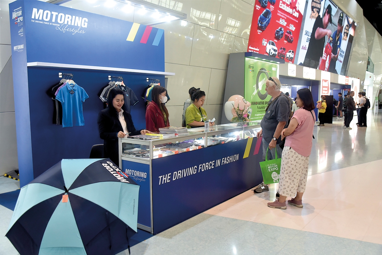 สินค้าที่ระลึกจากงาน “มหกรรมยานยนต์ ครั้งที่ 42” โดย บริษัท คโรม จำกัด ที่ผู้ชื่นชอบของสะสม ไม่ควรพลาด เช่น เสื้อที-เชิร์ท, เสื้อโพโล, หมวก, ลำโพง MR.MOTOR EXPO ฯลฯ